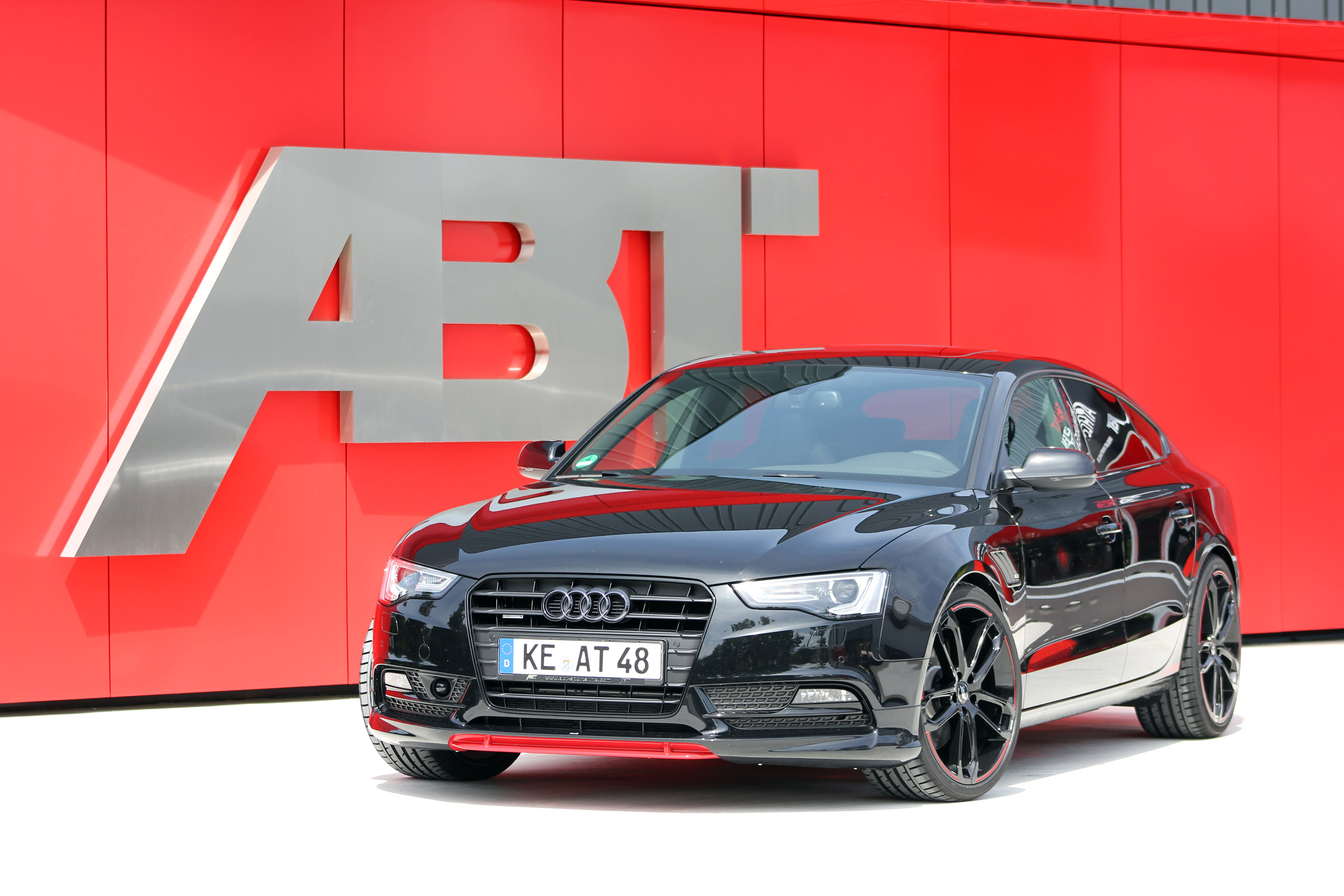 Acoustically the ABT AS5 DARK is also "dark": the sonorous 4-pipe exhaust system has a compelling smoky "voice" and, depending upon the engine, emits quite a variety of sounds. And, needless, to say, the tailpipes are chrome-plated in black. Another highlight are the 20'' ABT CR wheels, making the car more muscular when combined with wide 265 tyres and wheel spacers. The red flange leaves a dynamic and aggressive impression and, when rotating, an almost hypnotic one through its spoke neck gaps. And since a real hero also needs his own logo, ABT Sportsline has adorned the AS5 DARK with letterings and emblems within and without. You also get the right set of floor mats, of course. After all, a hero's motto should always be "Stay clean!"