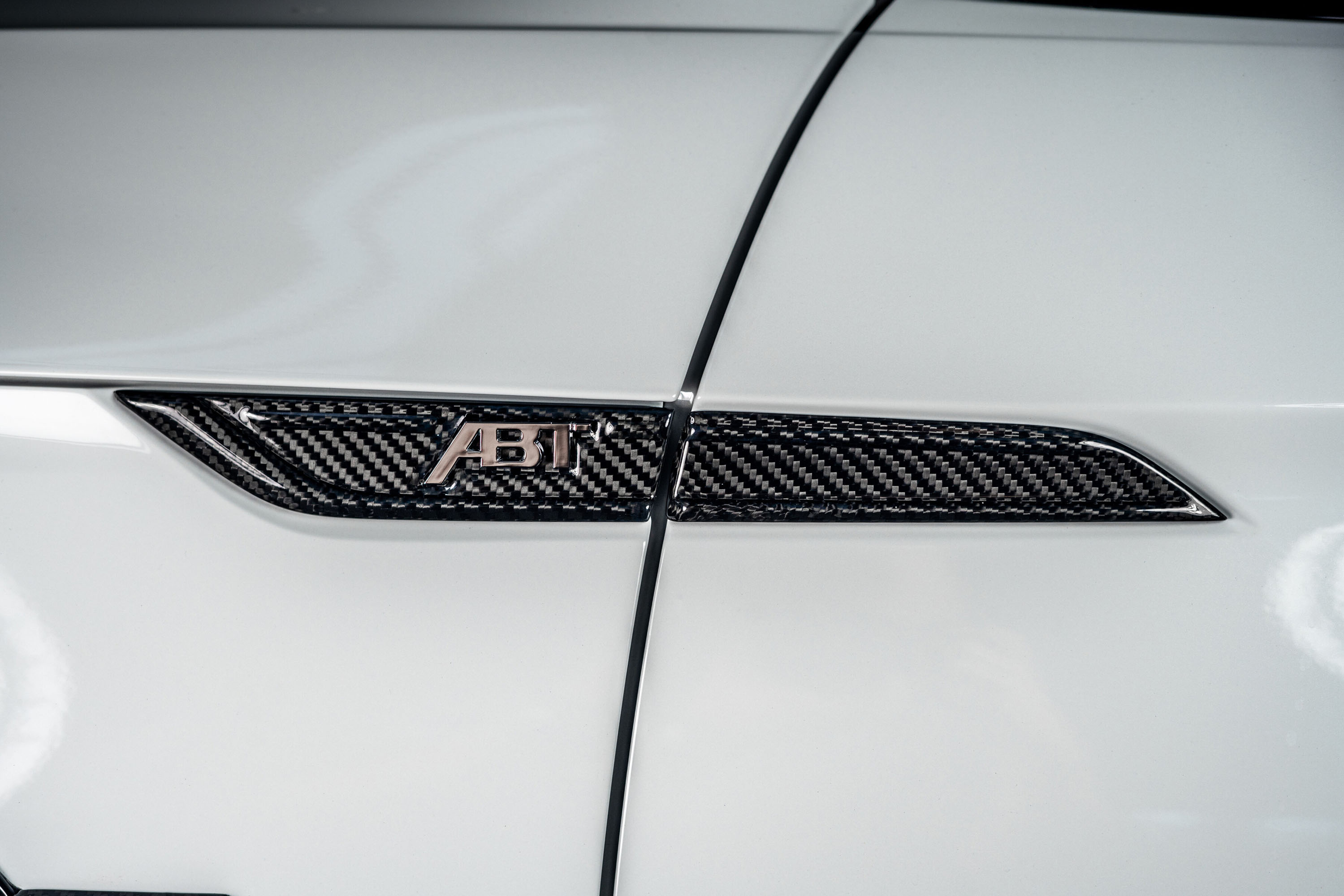 Visually, the vehicle is also striking: The comprehensive aerodynamics package includes numerous components in glossy visible carbon. At the front, the ABT front lip, ABT front flics and ABT front grille frame with RS5-R logo are eye-catching features. The flanks look even more aggressive with the optional ABT wheel arch vents featuring carbon fins. This is completed by 10x21" ABT SPORT GR wheels. The rear features an ABT rear spoiler and an ABT rear skirt add-on with RS5-R logo. A four-pipe ABT exhaust systemwith 102 mm diameter carbon tailpipe trims is also included.