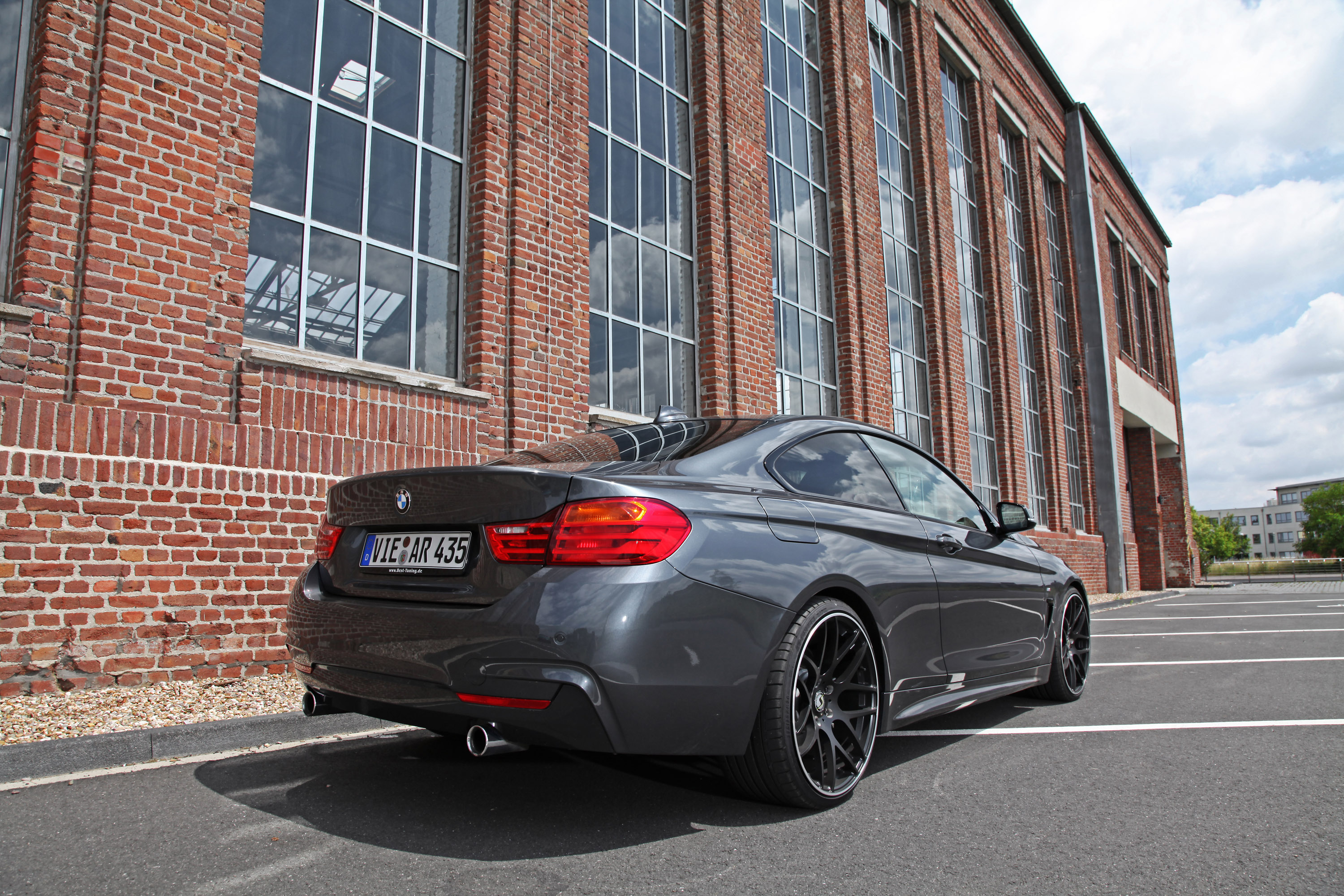 Furthermore, in this grey coupé have been installed KW coilovers. By the way, KW-Suspension is another co-operation partner of BEST-TUNING. Depending on the variants 1 – 3, beginning with 1,100.00 Euro are to be forked out. And, finally, a power improvement only by software modification without another hardware warrants for a HP-boost of the serial 306 HP up to now 365 HP. Matter of expense for: 1,299.00 Euro. Rests to say that BEST-TUNING has in its delivery program also exhaust systems for 435ix BMW, which has not been installed in the present case.