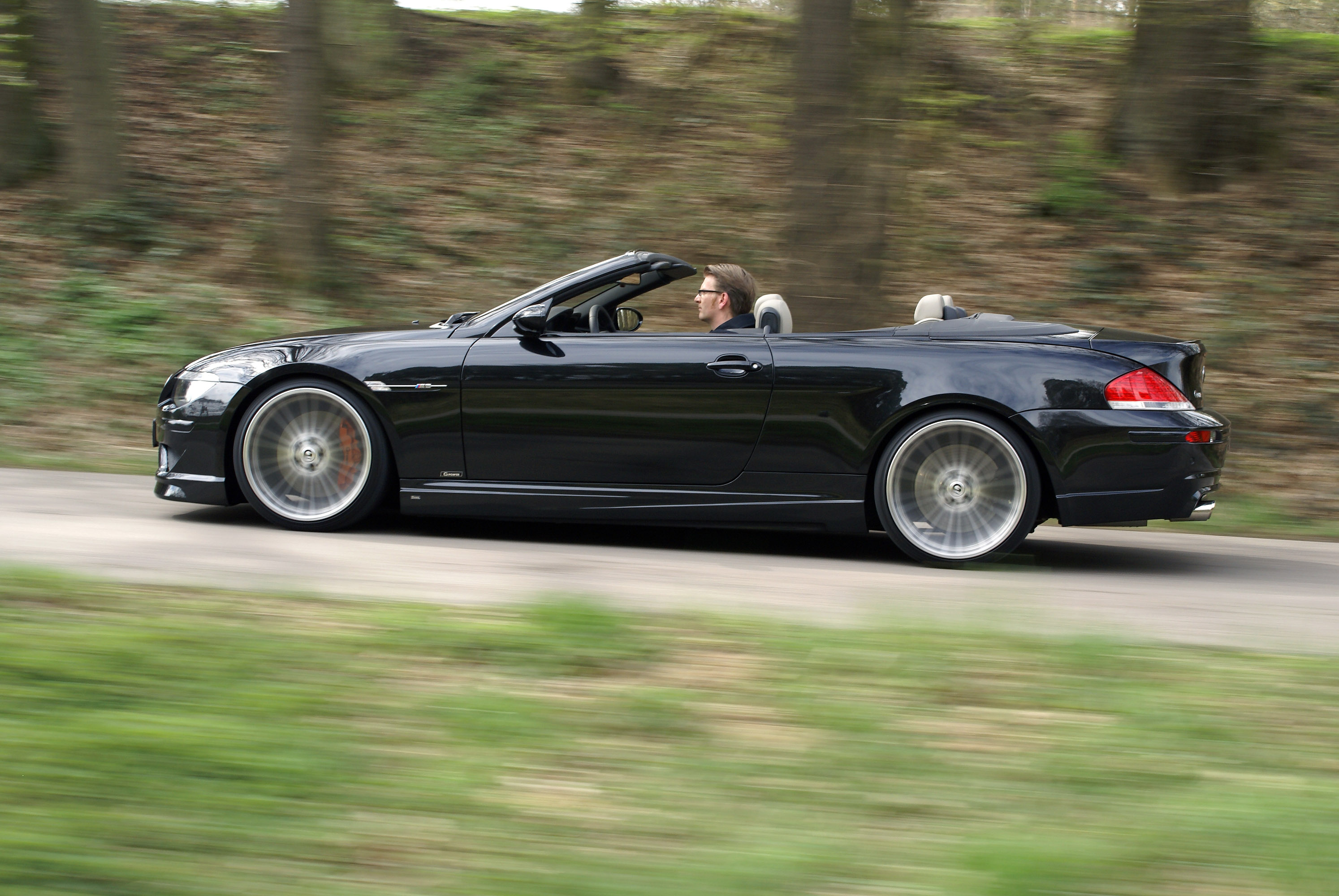 Acceleration performance benefits from the perfect performance characteristic accordingly. With a sprint time from rest to 100 km/h of 4.6 seconds and to 200 km/h in 11,9 seconds the 2-ton convertible accelerates like a true sports car. The 300-km/h barrier is shattered after 34,5 seconds from standstill. Contrary to the production car the G-POWER HURRICANE is not limited electronically to a top speed of 250 km/h but to 320 km/h. The determining factors therefore are weight, tyres and most important the soft top of the M6 convertible.The enormous performance places extreme demands on aerodynamics, tires, suspension and brakes.