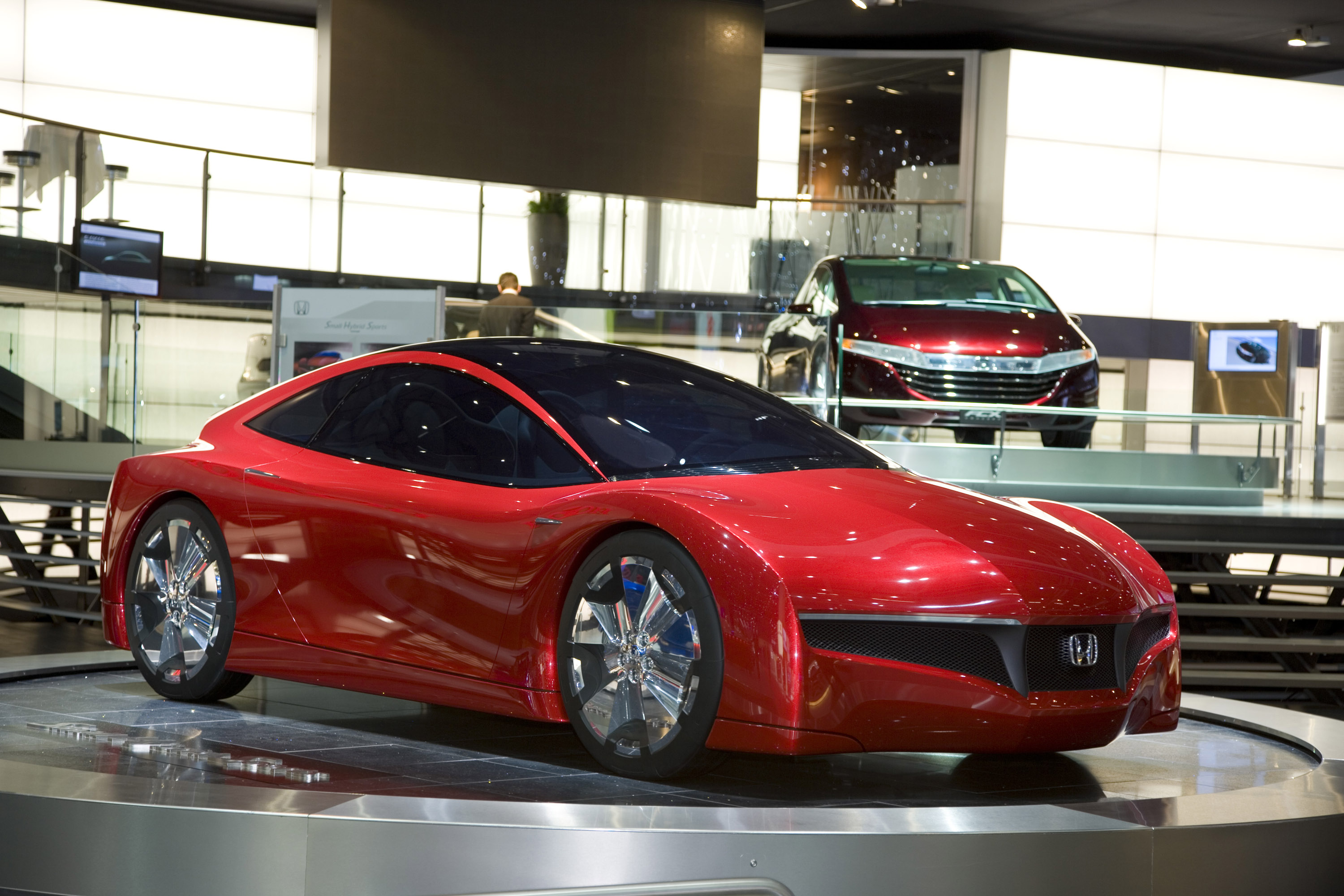 The Small Hybrid Sports Concept is conceived around a front-wheel drive, small car platform and is powered by a Honda IMA 4-cylinder petrol/electric hybrid system driving through a CVT transmission. It explores the idea that a car can have a low environmental impact yet still deliver all the driving enjoyment expected of a compact sports car.