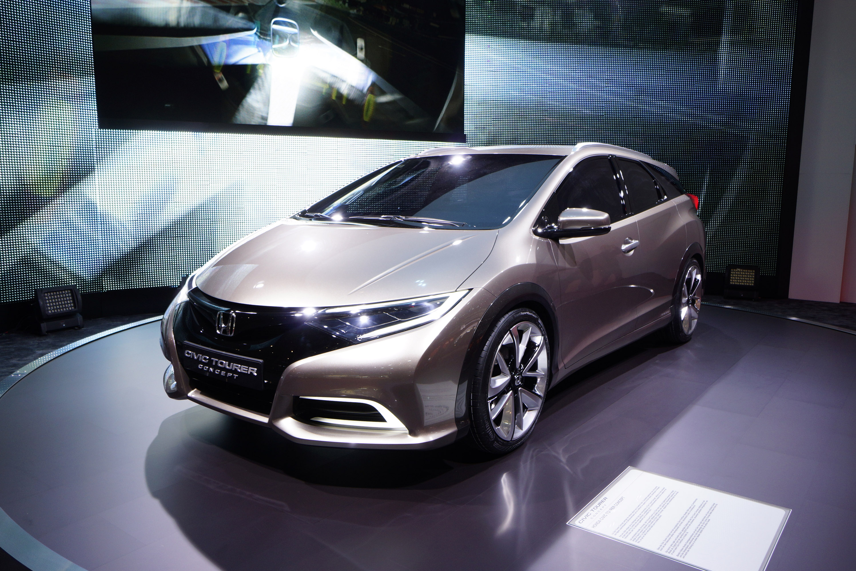 With a unique profile amongst its competitors, the Honda Civic Tourer Concept has a low and wide stance giving it a sporty feel which is complemented by the cab forward design and sleek cabin style which are also found on the Civic hatchback.