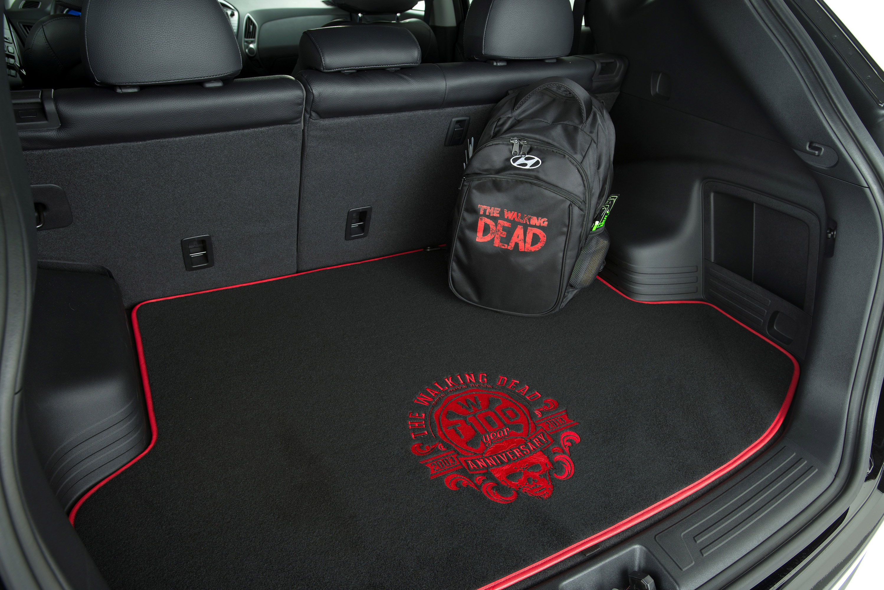 This Tucson features an Ash Black exterior with a subtle red accent graphics package and Special Edition exterior and interior badges. Roof rack cross rails provide additional room for hauling necessary survival gear while mudguards and custom floor and cargo mats help keep the vehicle clean. The vehicle will be offered only in AWD to assist drivers when off-roading away from the undead. Within the Tucson's black leather interior, passengers will find a custom Zombie Survival Kit – a Walking Dead 72-hour survivalist's backpack, a necessary item for any zombie "prepper" – and a Walking Dead Tucson Quick Reference Guide, to help utilize all the features in the Special Edition vehicle. In addition, for true enthusiasts of The Walking Dead, this Tucson will offer vehicle decals for the four factions featured in the series: Hilltop, Kingdom, Saviors, and Survivors, so owners can proudly display where their allegiances lie.