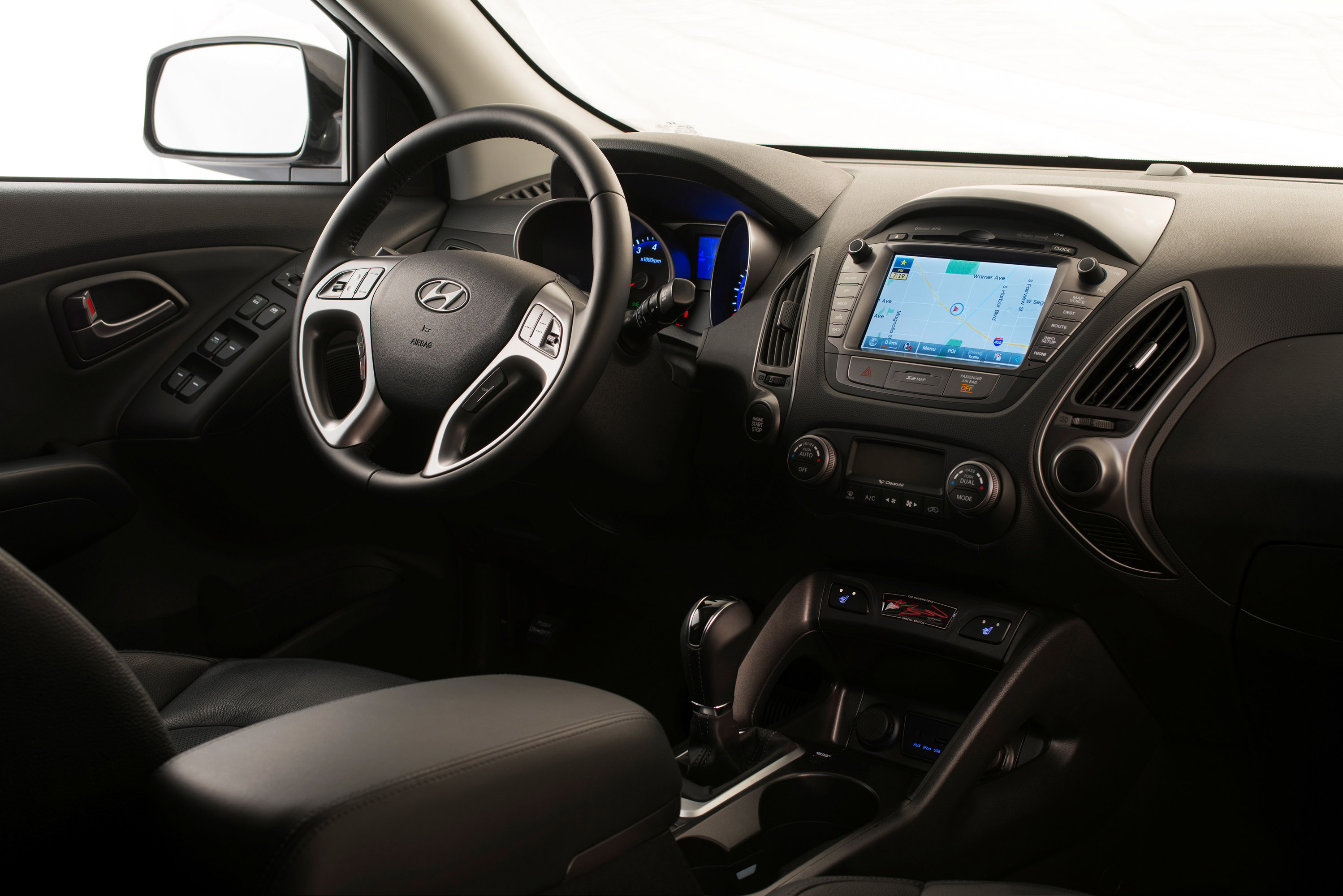 The Walking Dead Special Edition Tucson is powered by the advanced 2.4-liter Theta II Gasoline Direct Injection (GDI) engine and offers a host of valuable features, including LED taillights, dual automatic temperature control and a premium audio system with HD Radio™ technology. Hyundai's Blue Link ® safety, service and infotainment telematics system is also standard on The Walking Dead Special Edition Tucson and includes three years of Assurance Connected Care as well as SOS Emergency Assistance capabilities – this feature will be particularly helpful for those trying to survive a zombie takeover. Additionally, Tucson's third-generation navigation system includes a larger seven-inch touchscreen.