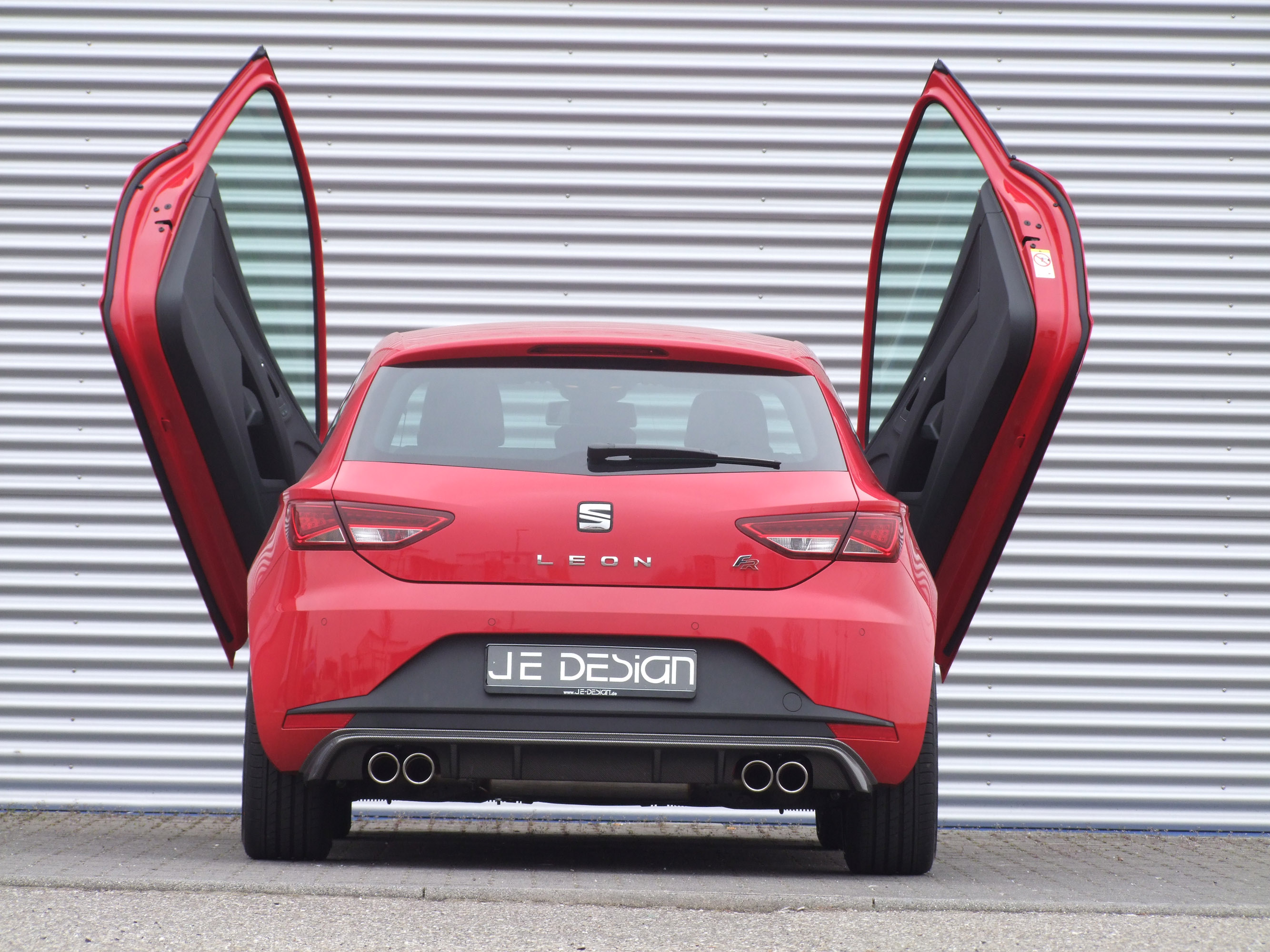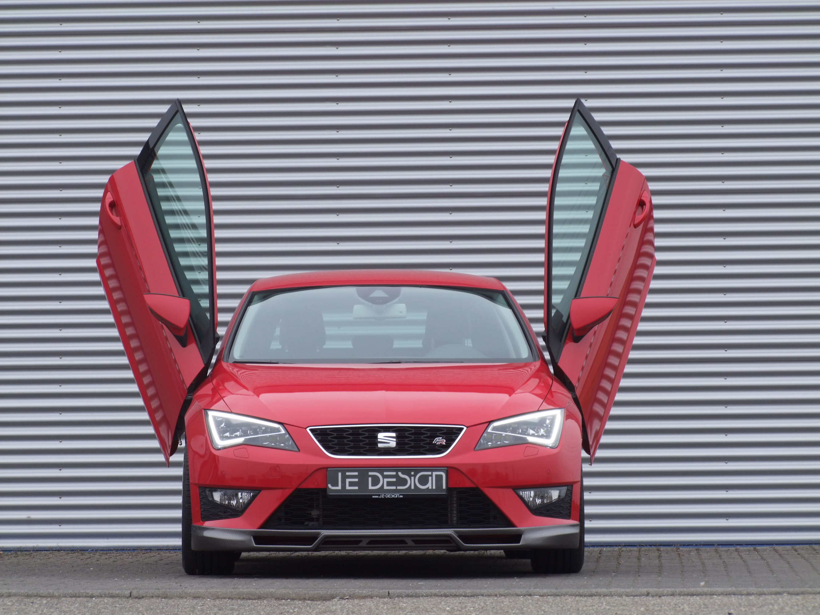 Visually accentuated, sporty and classy: That's the Seat Leon SC FR (photo) by JE DESIGN. The modified doors on the driver's and passenger's side with LSD-hinges open in the fashionable Lambo-style, thus ensuring an imposing appearance. The LSD-Doors, provided with a certificate from an official testing organization, are now available for the three-door Leon for 1,499 Euro.