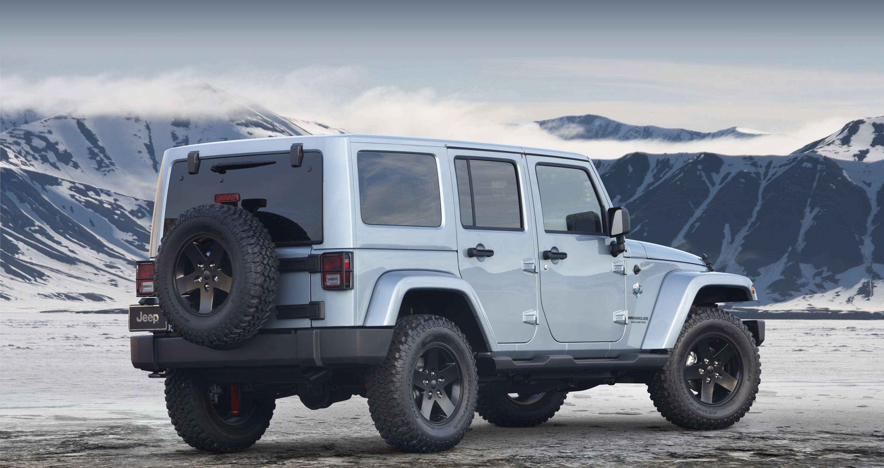Jeep Wrangler Arctic also offers an aggressive Wrangler Rubicon tire and wheel package, with unique semi-gloss black 17-inch wheels shod with 32-inch tires.