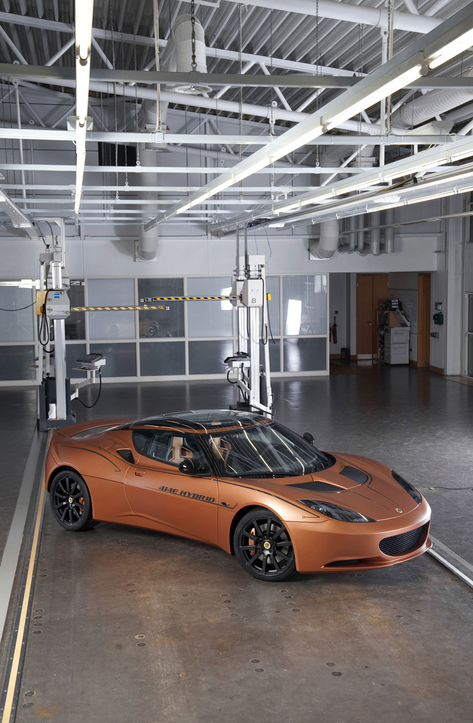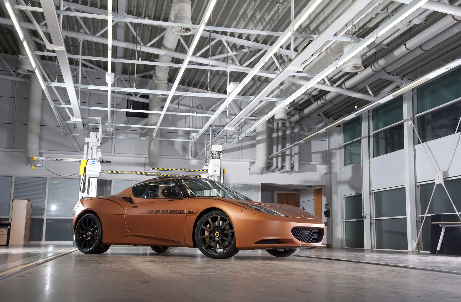 The Lotus Evora 414E Hybrid has been developed as technology demonstrator from Lotus Engineering, produces 414 PS (305 kW) of power, promises breathtaking performance from a highly efficient propulsion system. The concept showcases new developments in plug-in range- extended electric propulsion and new electronic technologies to enhance driver involvement.