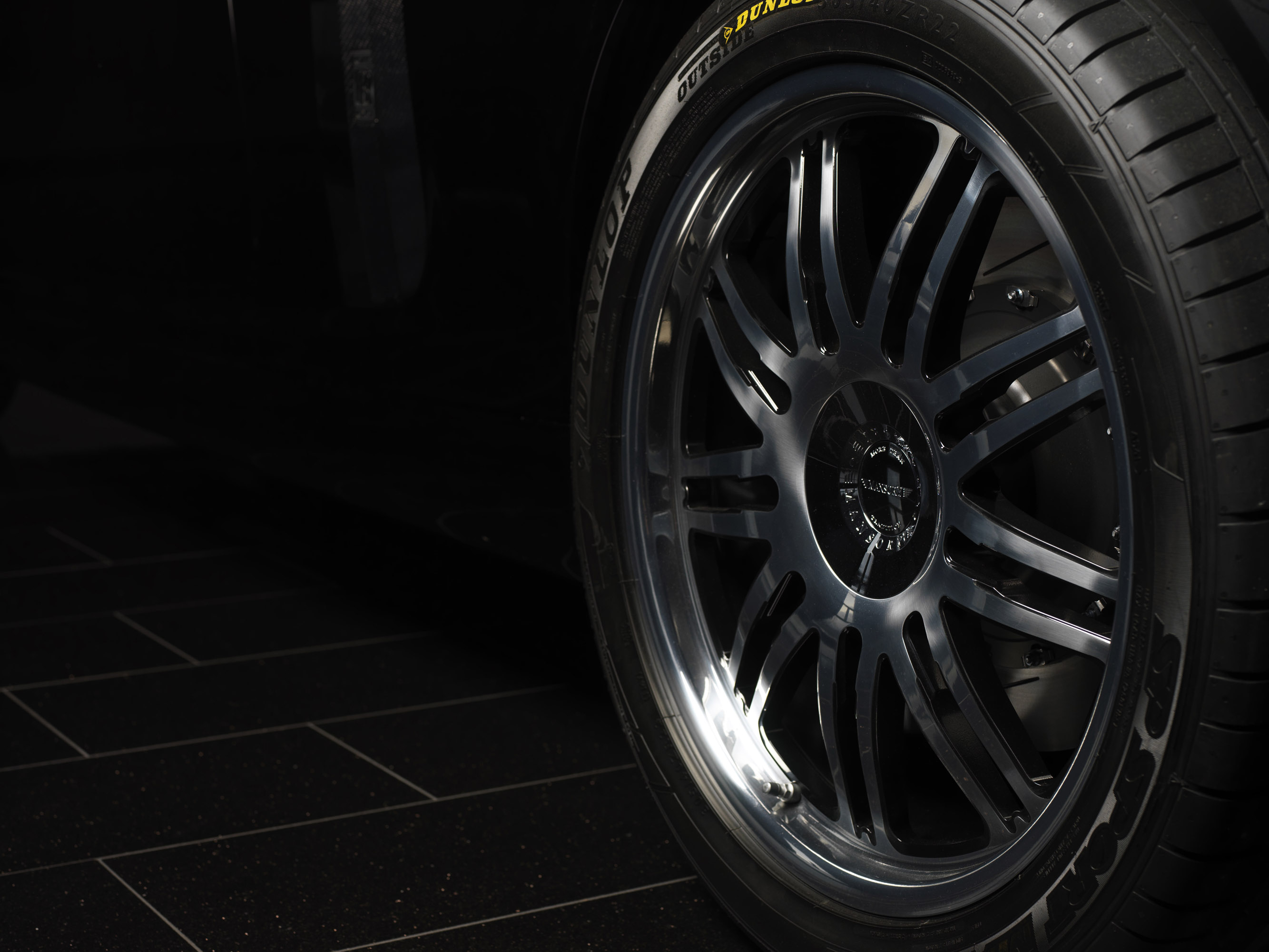 Sporty elegance coupled with high technical sophistication are the defining characteristics of the wheel design used for the MANSORY Bel Air. The single-piece mirror-finished wheel with its nine twin-spoke design is impressive both due to its exclusive look and also thanks to its outstanding workmanship. The forged construction makes the MANSORY wheel rims exceptionally light compared with conventional cast wheels. The resulting reduction of unsprung weight significantly improves the acceleration as well as the stopping distance and handling. To ensure that this 22-inch alloy wheel is fitted with an ideal set of tyres, the Dunlop SP Sport Maxx tyre in the dimension 305/40 has been specially developed in collaboration with Dunlop.