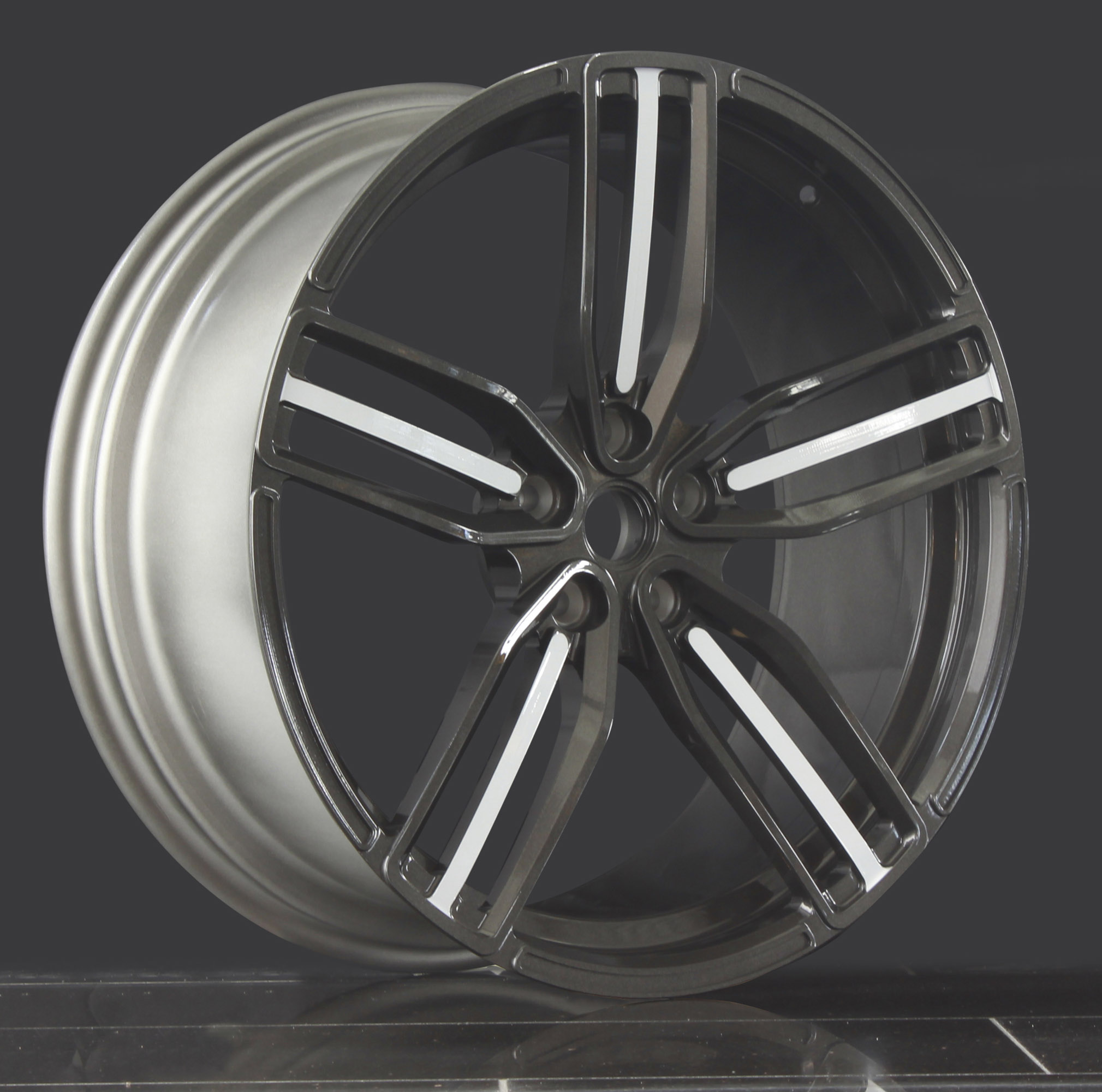 company developed especially light forged wheels in 21 (front axle) or 22 (rear axle) sizes. The use of ultra-light aluminium alloys and the resulting reduction of the unsprung mass, has significantly improved the acceleration, the braking distance, and the handling. High-performance 255/30/21 front and 355/25/22 rear tyres are fitted.
