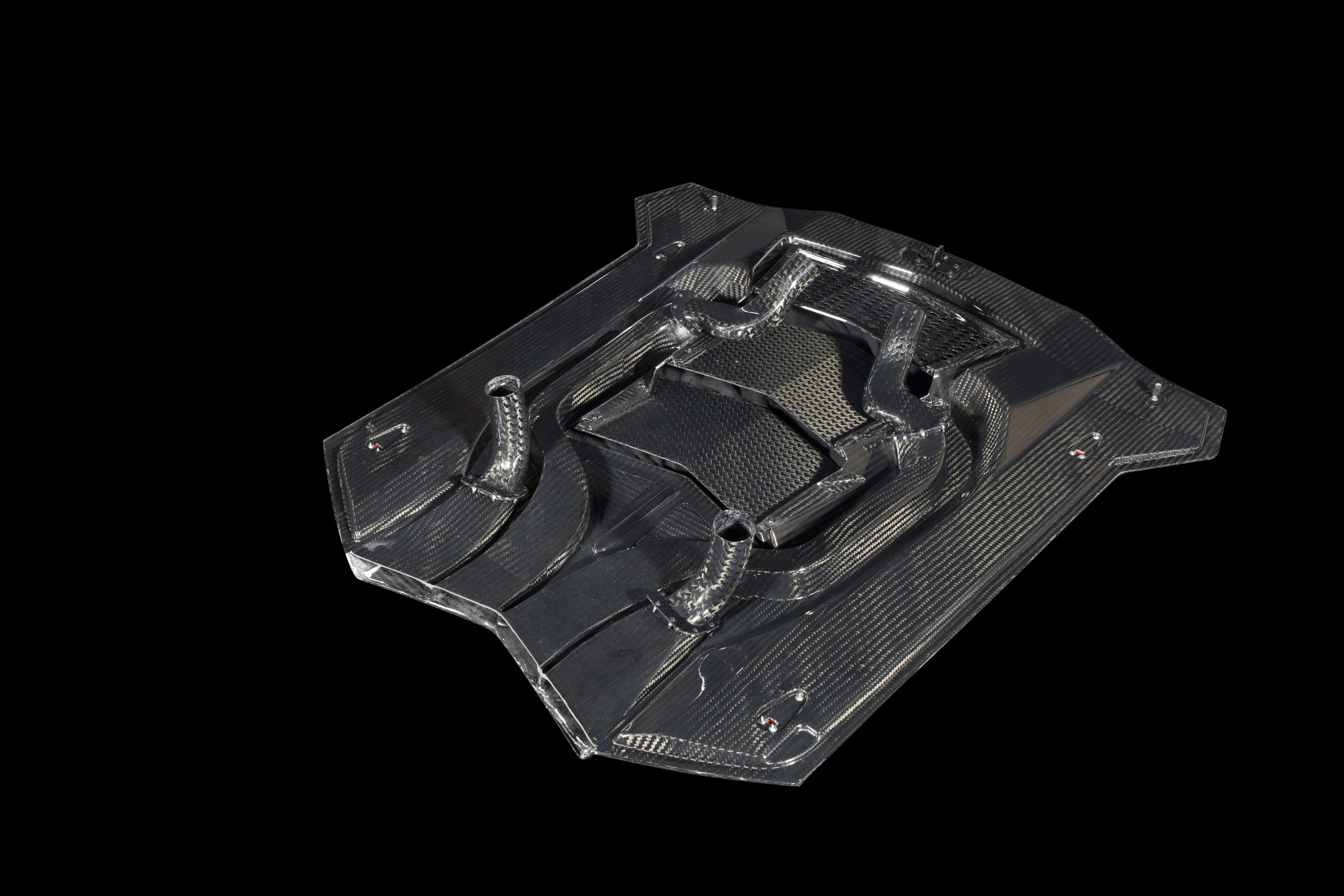 Carbon fibre everywhere the eye can see: The ultralight and high-strength material of carbon fibre finds ample uses even in the series version of the Lamborghini Aventador LP700-4. MANSORY purposefully continued to use it in the completely reworked MANSORY CARBONADO GT as the main component of all its bodywork components. Every single element of the MANSORY aerodynamic design is made in prepreg autoclave process in perfect surface quality and precision-built into the vehicle. A carbon fibre weave with a stealth-look is being used, which is being exclusively deployed by MANSORY in vehicle construction. An eye-catching new feature of the newly styled Aventador front is the striking skirt with the optimised air intakes for improved ventilation of the front radiator. In combination with the new front lip spoiler and the proprietary developed daytime running lights MANSORY has not only achieved an aggressive appearance but also generated additional drive. Also the front wing, as well as the bonnet will be exchanged and replaced by proprietary developments. The sides have grown by 40 millimetres on the front and by a remarkable 50 millimetres on the rear axle in width.