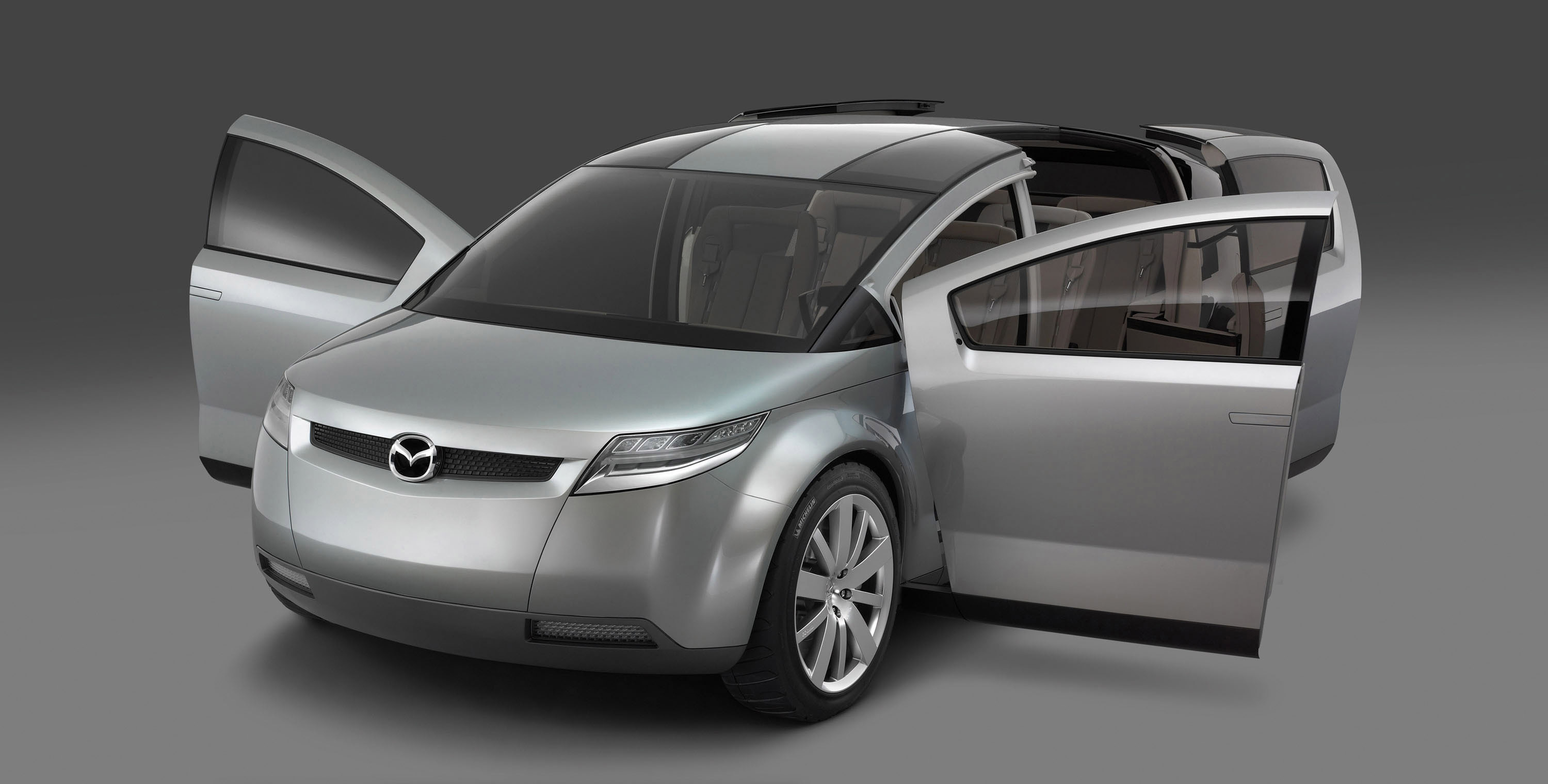 The new Mazda concept vehicle was developed as a calculated experiment into how customers interact with a vehicle's interior space. Low, sleek and well proportioned, Mazda's six-seat concept also works to tear down the barriers that traditionally separate sports cars and family cars. Just as the all-new Mazda RX-8 is a unique approach to the four-seat performance car, the new concept is an innovative approach to a six-seat configuration. As with all Mazda products, central to the development was a commitment to make every moment in a car exciting, whether traveling from place to place or just driving for fun.