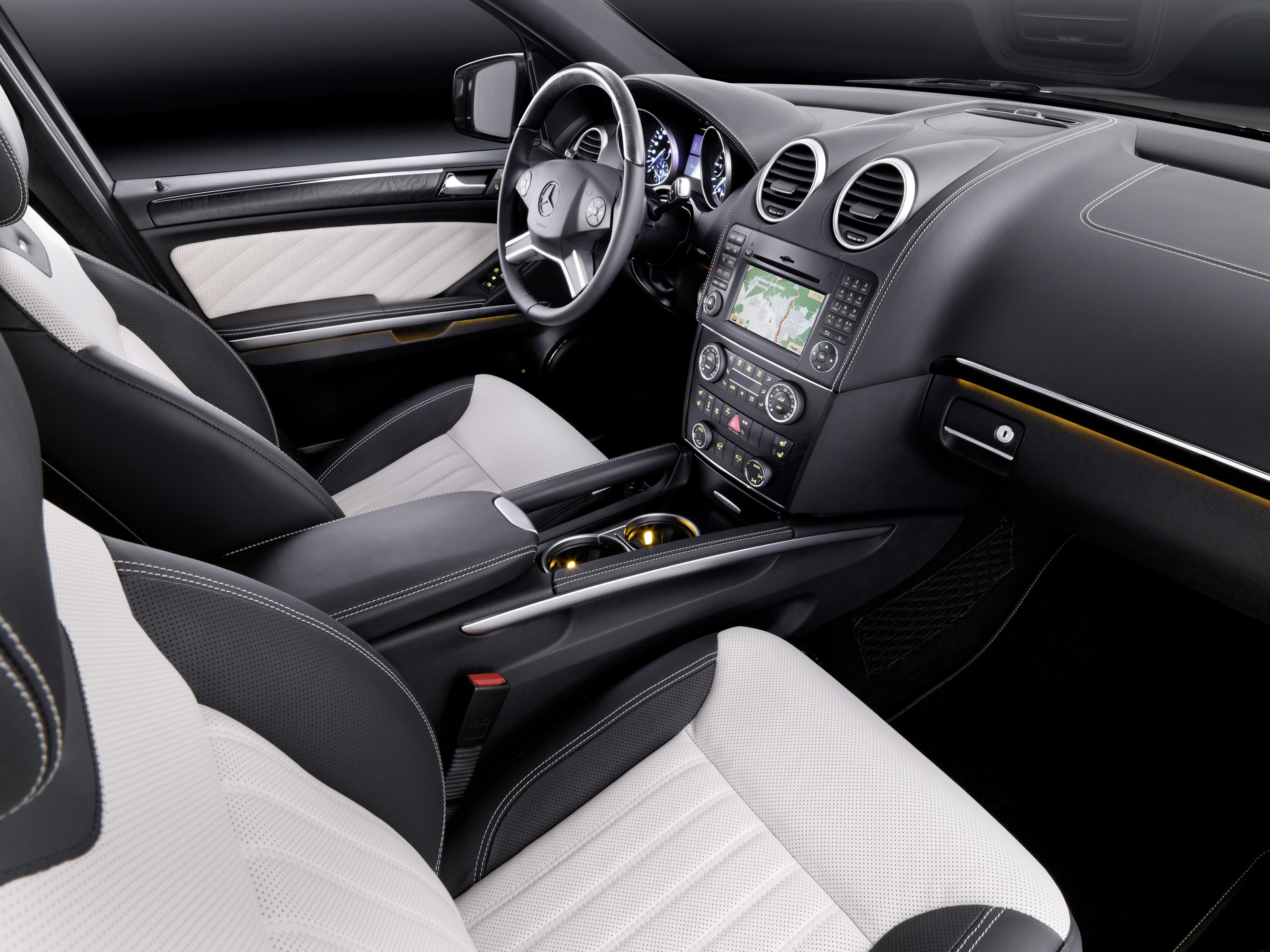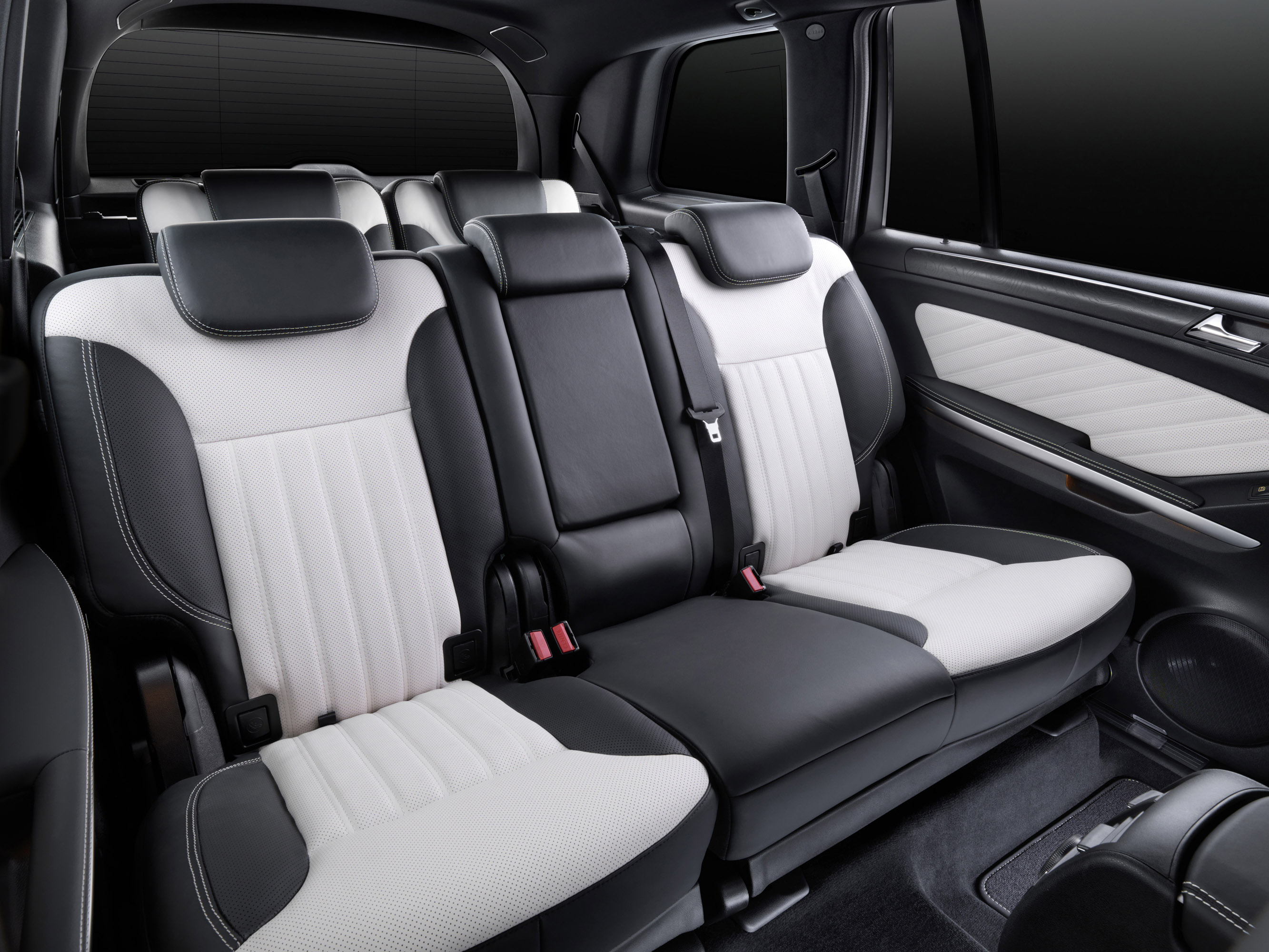 The interior of the GL-Class accommodates up to seven occupants in comfort with an exceptional level of spaciousness, creating the luxurious atmosphere you would expect from Mercedes-Benz - in this case comparable to the S-Class. For the "Grand Edition", Mercedes-Benz has refined the interior further, especially through the use of stylish materials. Exclusive appointments include two-tone seats (black/porcelain or black/maroon) in leather (or in nappa leather as an option) with a special piping design and contrasting stitching.
