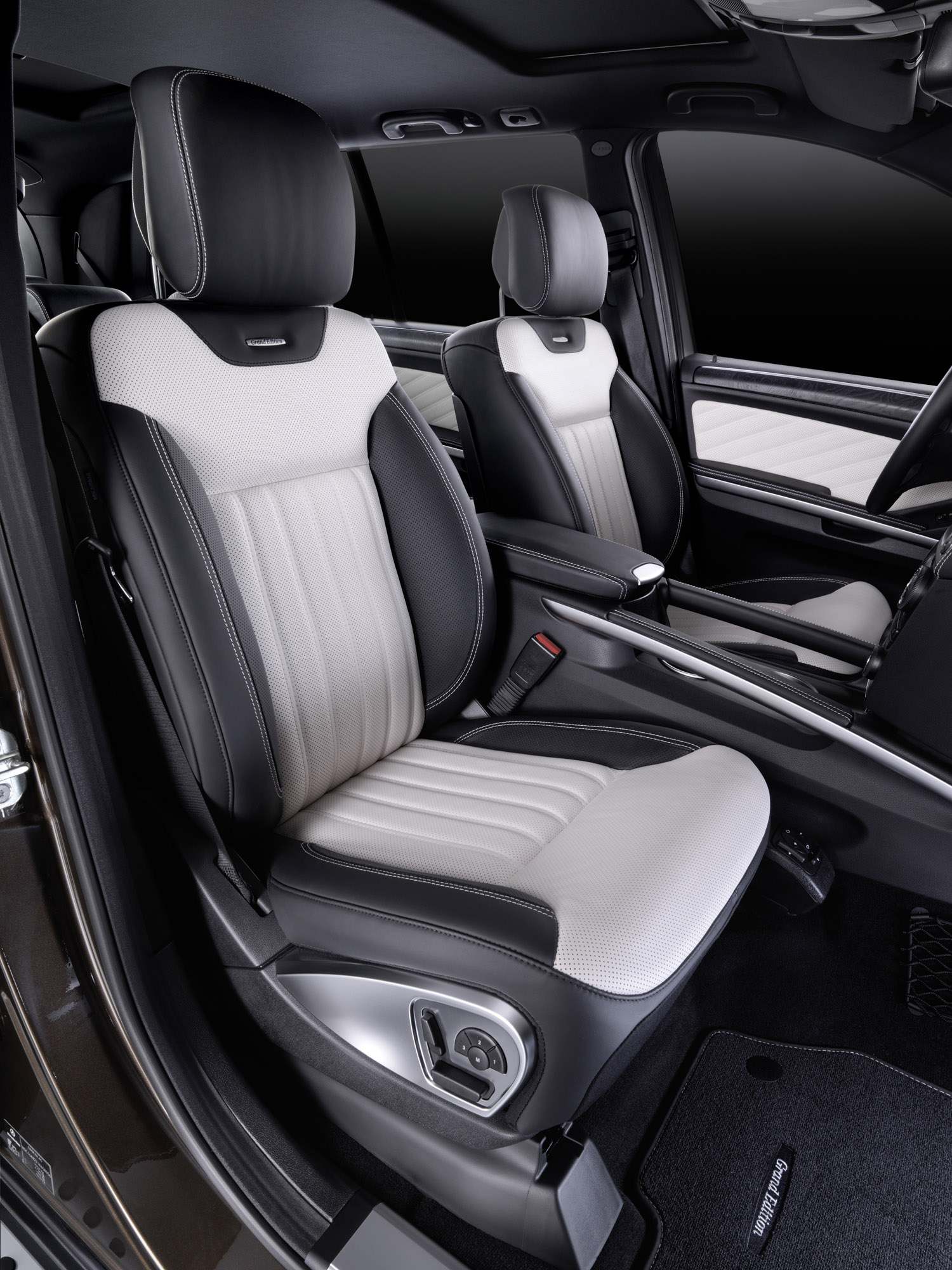 Other high-quality appointments: comfort headrests for the driver and front passenger, ambient lighting, roof liner in black designo fabric, velour floor mats with contrasting stitching and "Grand Edition" lettering, "Grand Edition" badge on the centre console, sports pedals in brushed stainless steel with rubber studs and door sill panels in stainless steel.