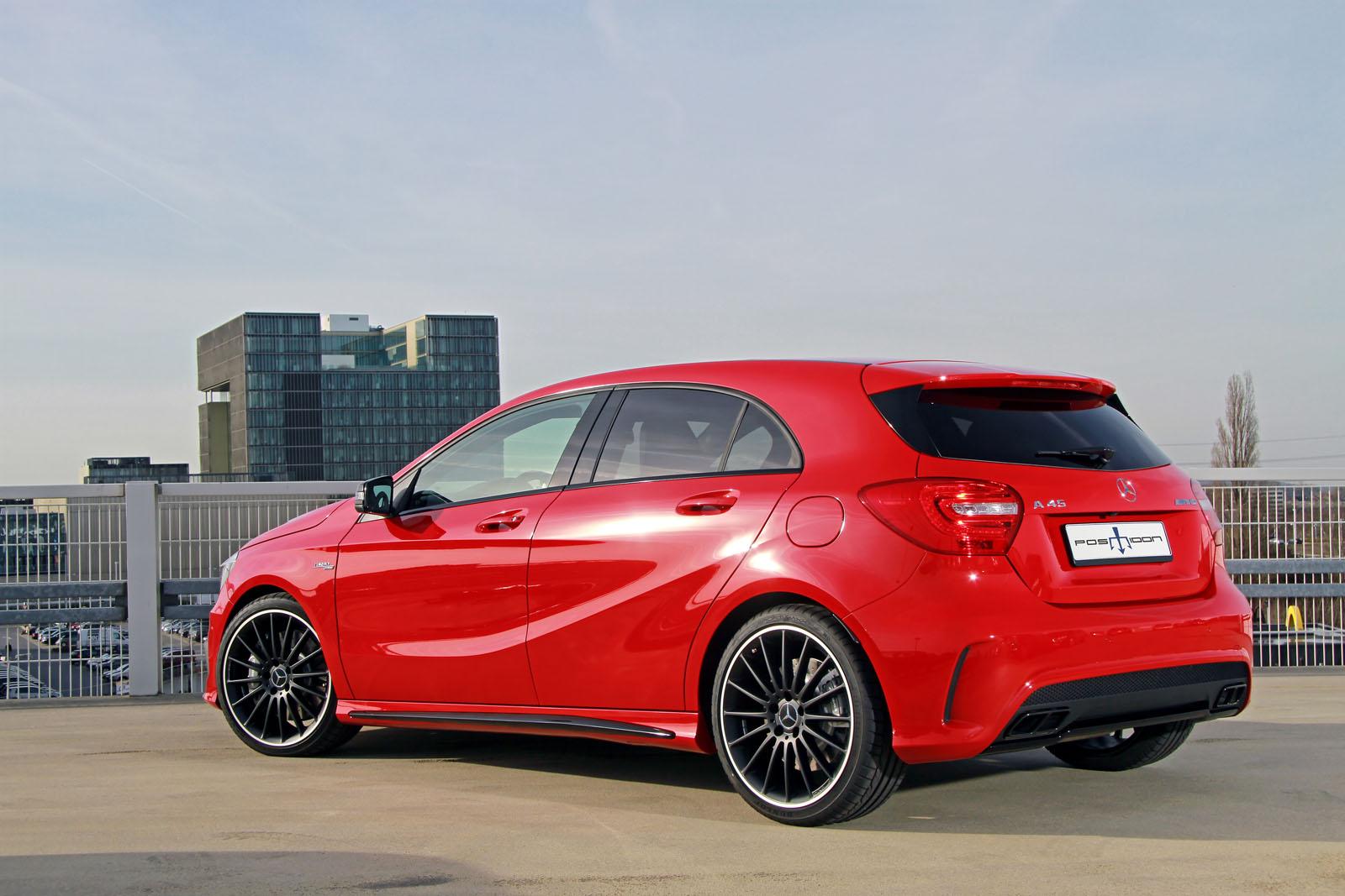 For the M133DE20AL engine of A45 AMG, POSAIDON offers performance optimization in three stages: Performance and torque is elevated to 385 horse power / 485 Nm in the "small" 1st of stage 2 unfurls 405 horse power / 490 Nm while the A45 AMG as optimized by POSAIDON unleashes good 445 horse power and 535 Nm in the strongest upgrade stage. The prices for POSAIDON optimization begin from EUR 1,500 (only Vmax deactivation).