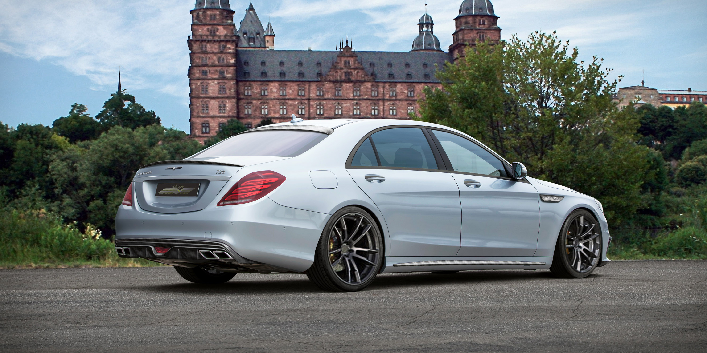 Now and here we present the new "S65Project by VOLTAGE-DESIGN. The matter is of the brand new twelve-cylinder "de luxe" model of Mercedes-Benz in AMG version, that gave the name S65 AMG. As generally known, this car is fitted completely by (nearly) all what ambitious drivers can wish. The flag ship from Affalterbach has been refitted at Goldbach by a carbon made aerodynamics packet for 24,900 Euro with the following ingredients: front spoiler, front apron wings, side skirts and mirror caps, Voltage side logos, a spoiler on roof and tail including diffusors. The bonnet made completely in carbon demands additional 3,000 Euros.