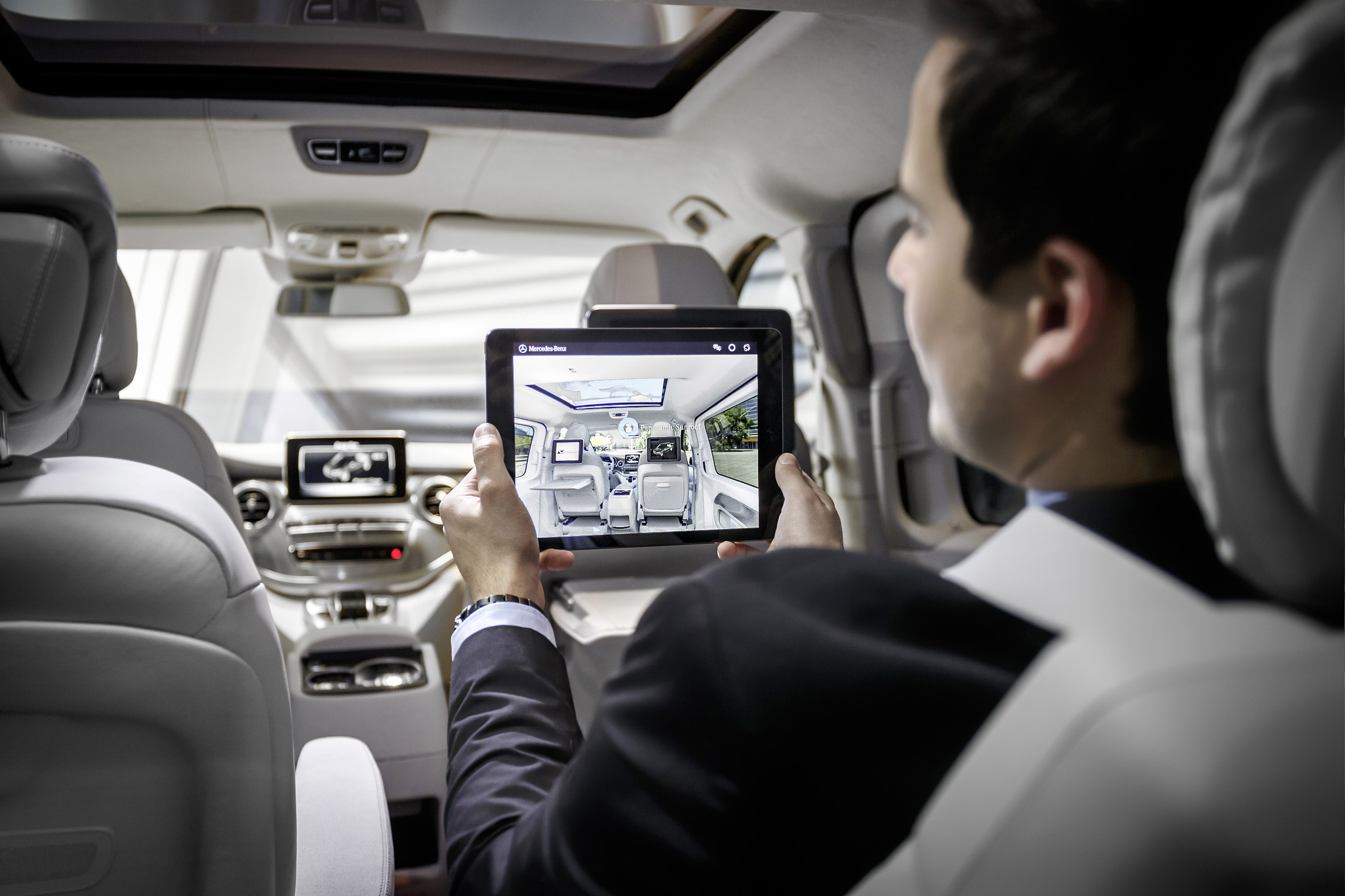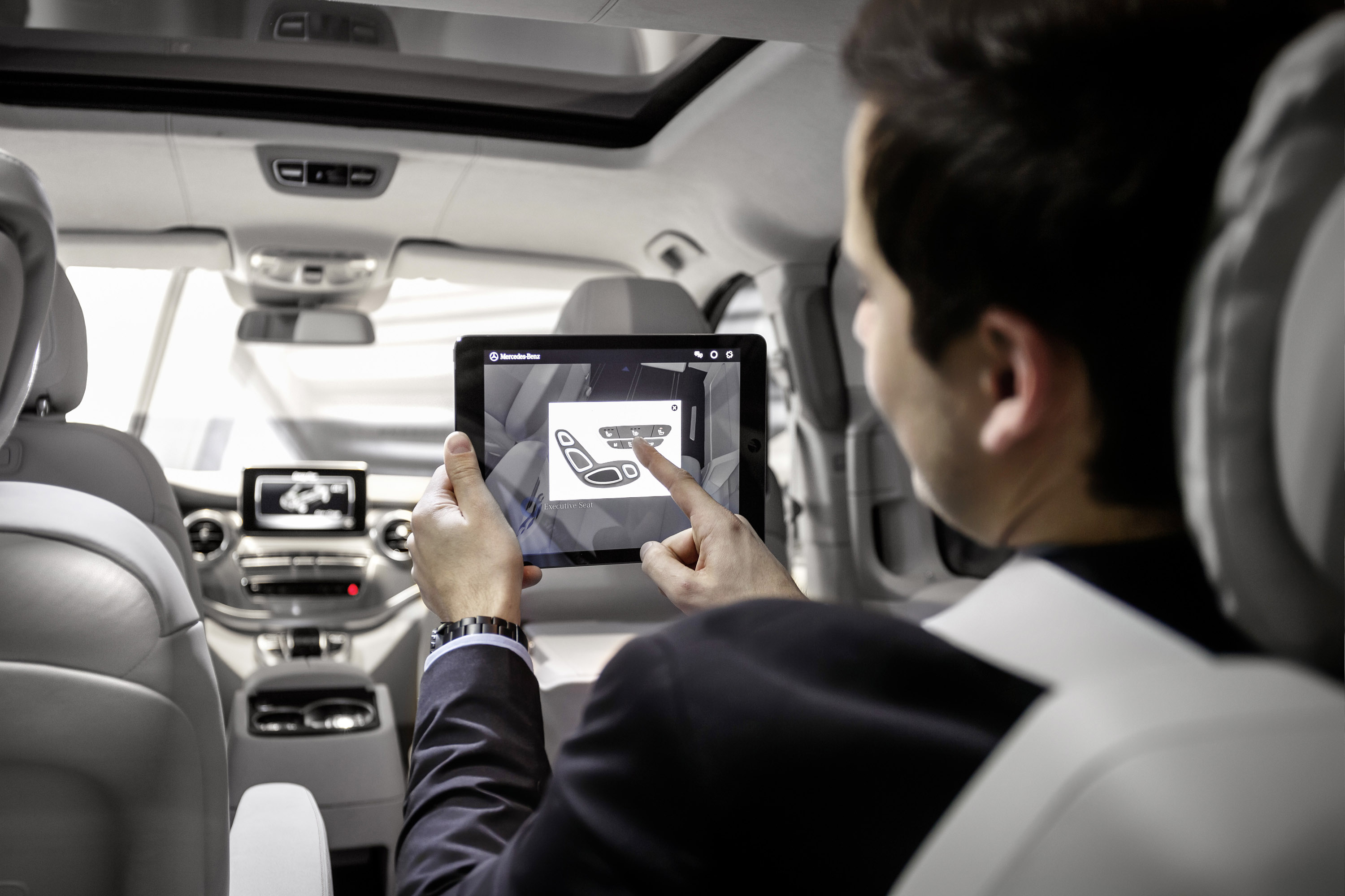 Along with the panoramic sliding sunroof with MAGIC SKY CONTROL, the Concept V-ision e also includes other new equipment features that make for even greater comfort and more varied personalization options for the V-Class as a private or business vehicle — and for even more exclusive tastes as well.