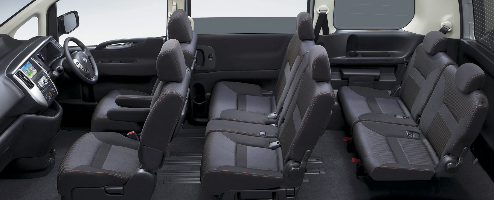 The seats can be reconfigured in various seating patterns in simple, easy operations. In addition, the Serena comes with a wide variety of convenient features for more enjoyable travel, including a car interphone system and a rear-seat entertainment system comprising a wide 9-inch power liquid crystal display monitor and a DVD-video player for rear-seat passenger enjoyment.