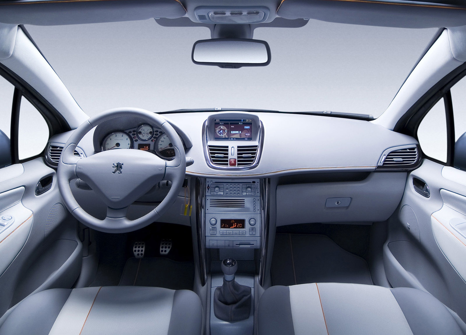 The interior ambience is strengthened by the brightness created by the glass roof. The "outdoors" is in effect brought into the cabin of this 207 SW Outdoors. The fascia, with its light and flowing design, is common with the rest of the 207 range, and here is trimmed in a bluish light grey leather, to match the bodywork.