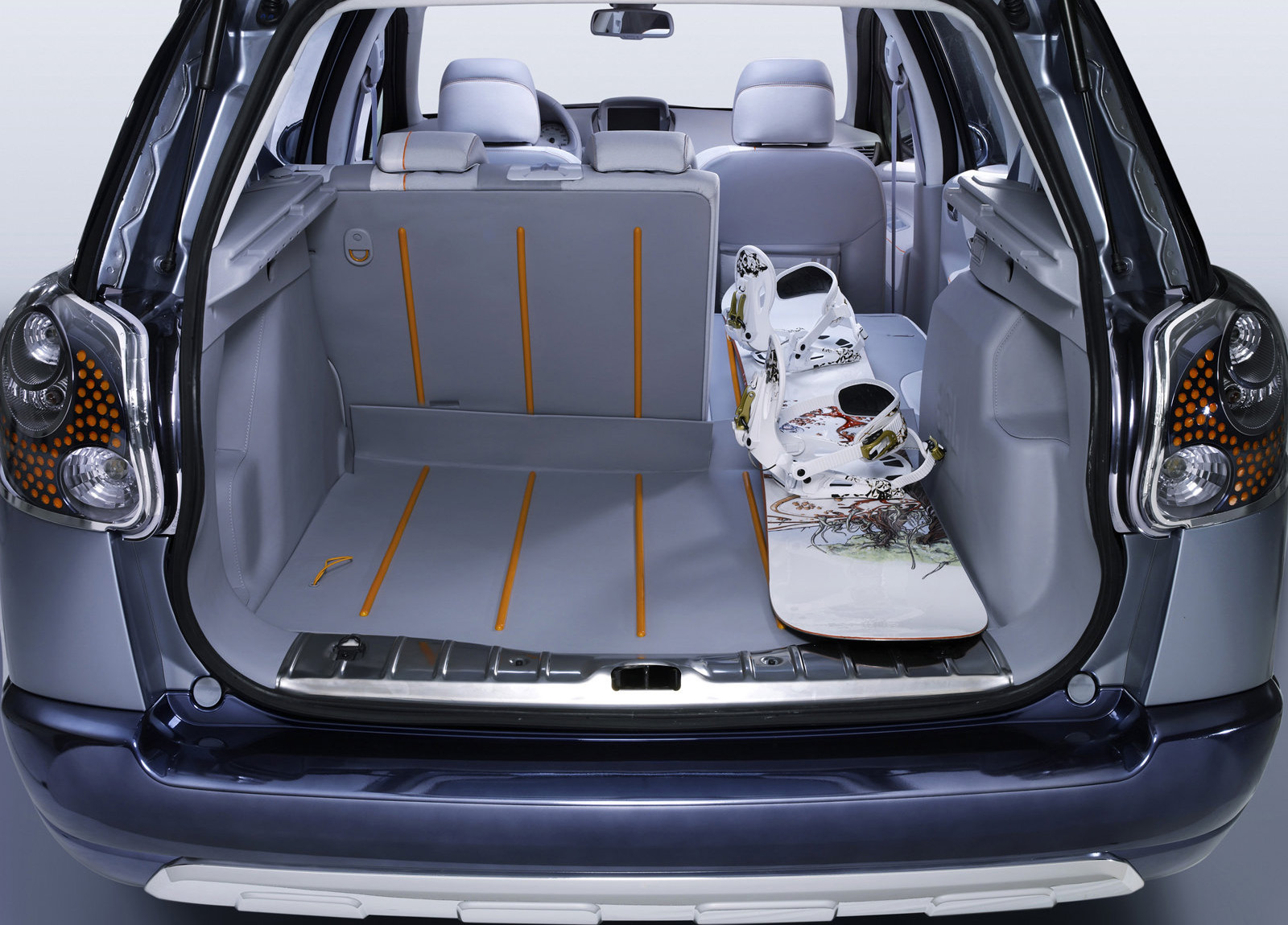The vehicle's modularity enables all kinds of sporting equipment to be easily loaded, thanks to a system that is as simple as it is ingenious – the rear seats have been designed to fold down in one movement to, give a perfectly flat space, the seat disappears into the floor at the point of the folded backrest.