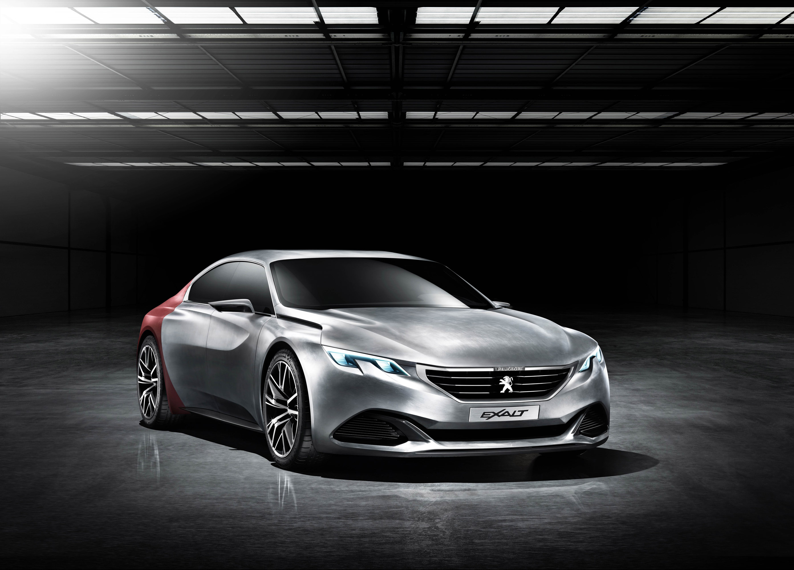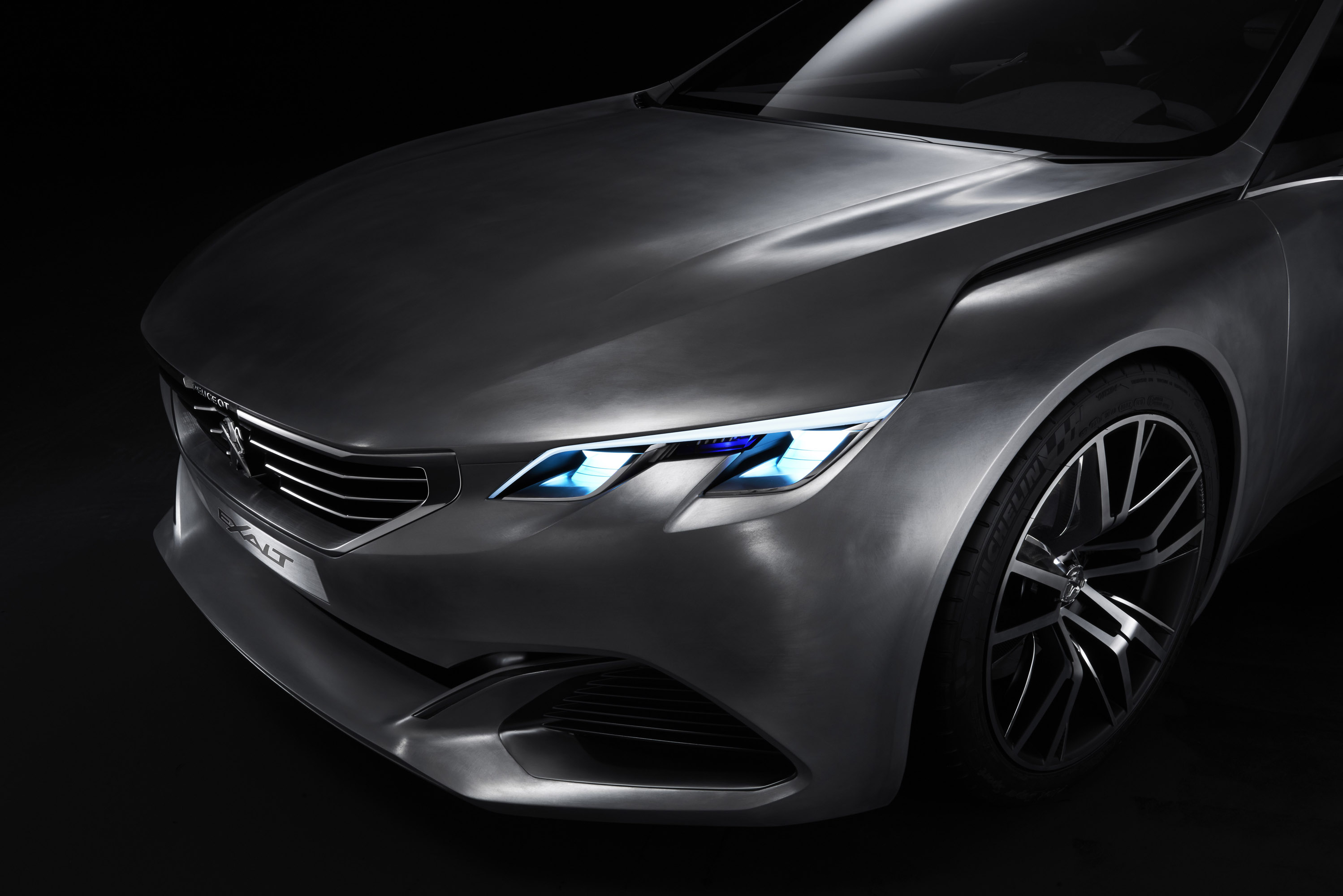 With its sleek and athletic lines, EXALT embodies the power of PEUGEOT design. Sitting on wide tracks and powerfully rounded wheel arches, this five-door saloon expresses its style over a length of 4.70m. The alliance of flat surfaces and straight cut lines reconciles aggressiveness and softness.