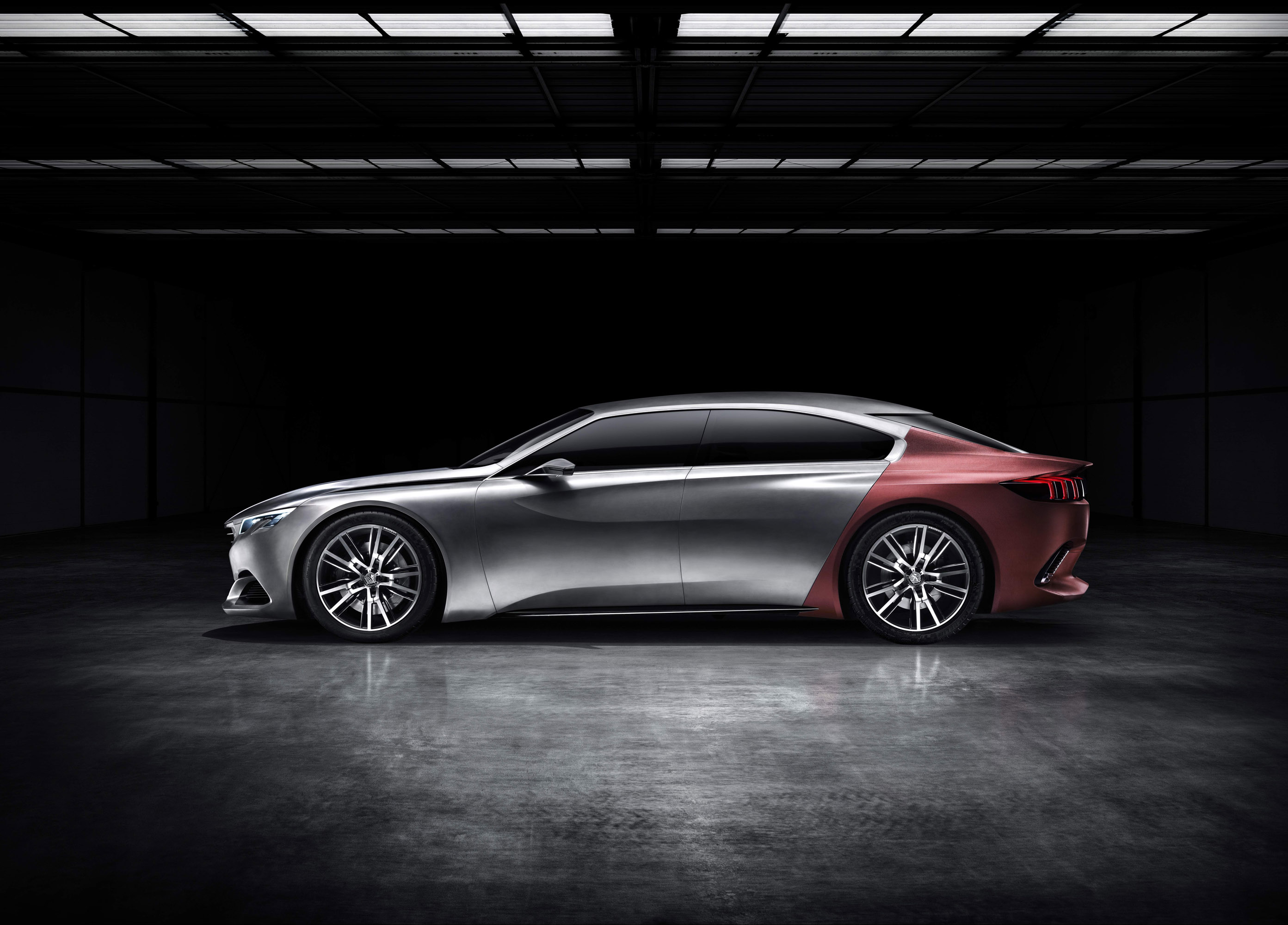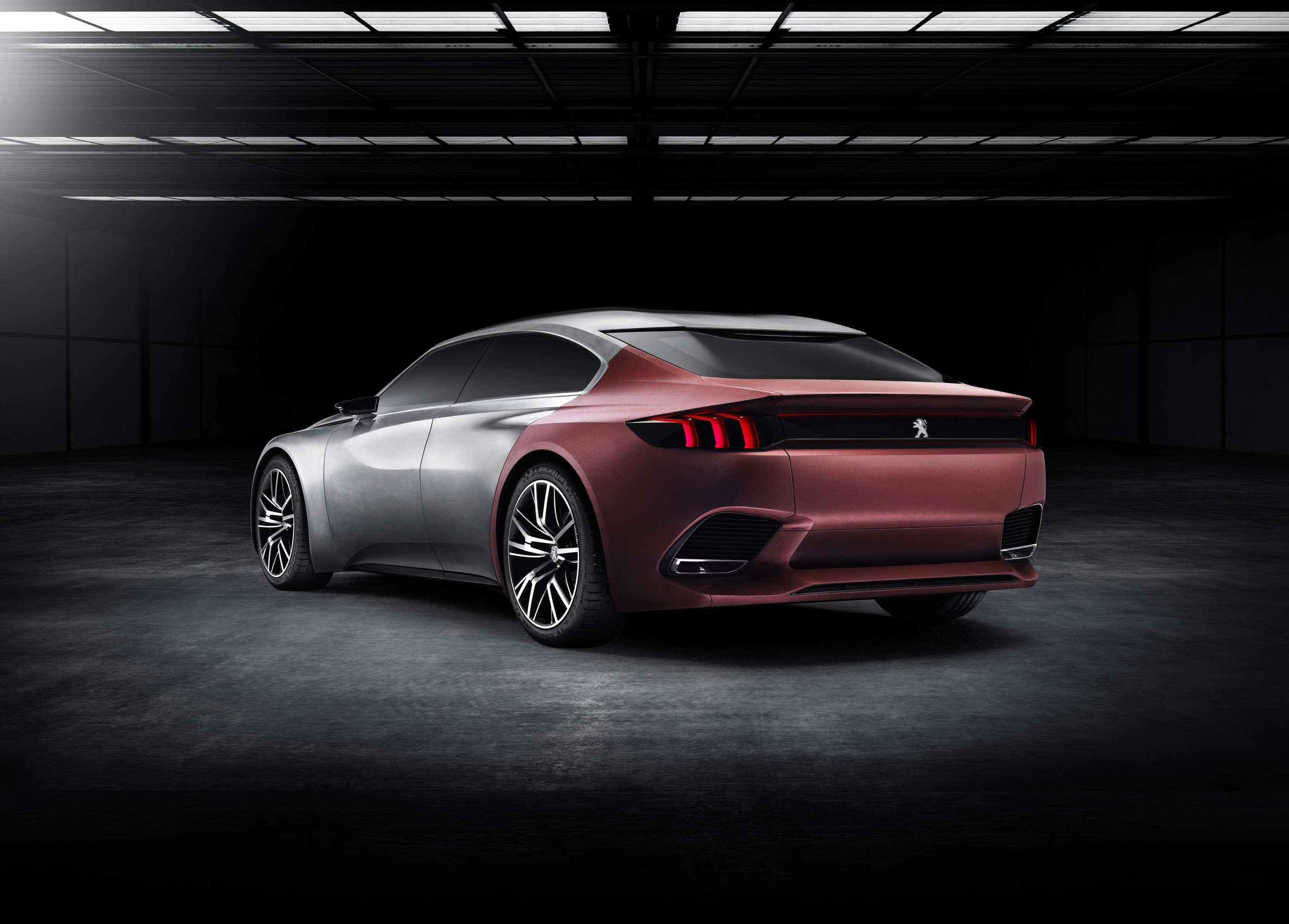 "PEUGEOT EXALT is athletic, powerful and sleek, incorporating original materials. Its cabin, trimmed in natural materials, is dedicated to comfort and instinctive driving. This innovative concept makes the saloon even more attractive and more versatile, in particular the boot with its unique opening mechanism exposing a large boot."
