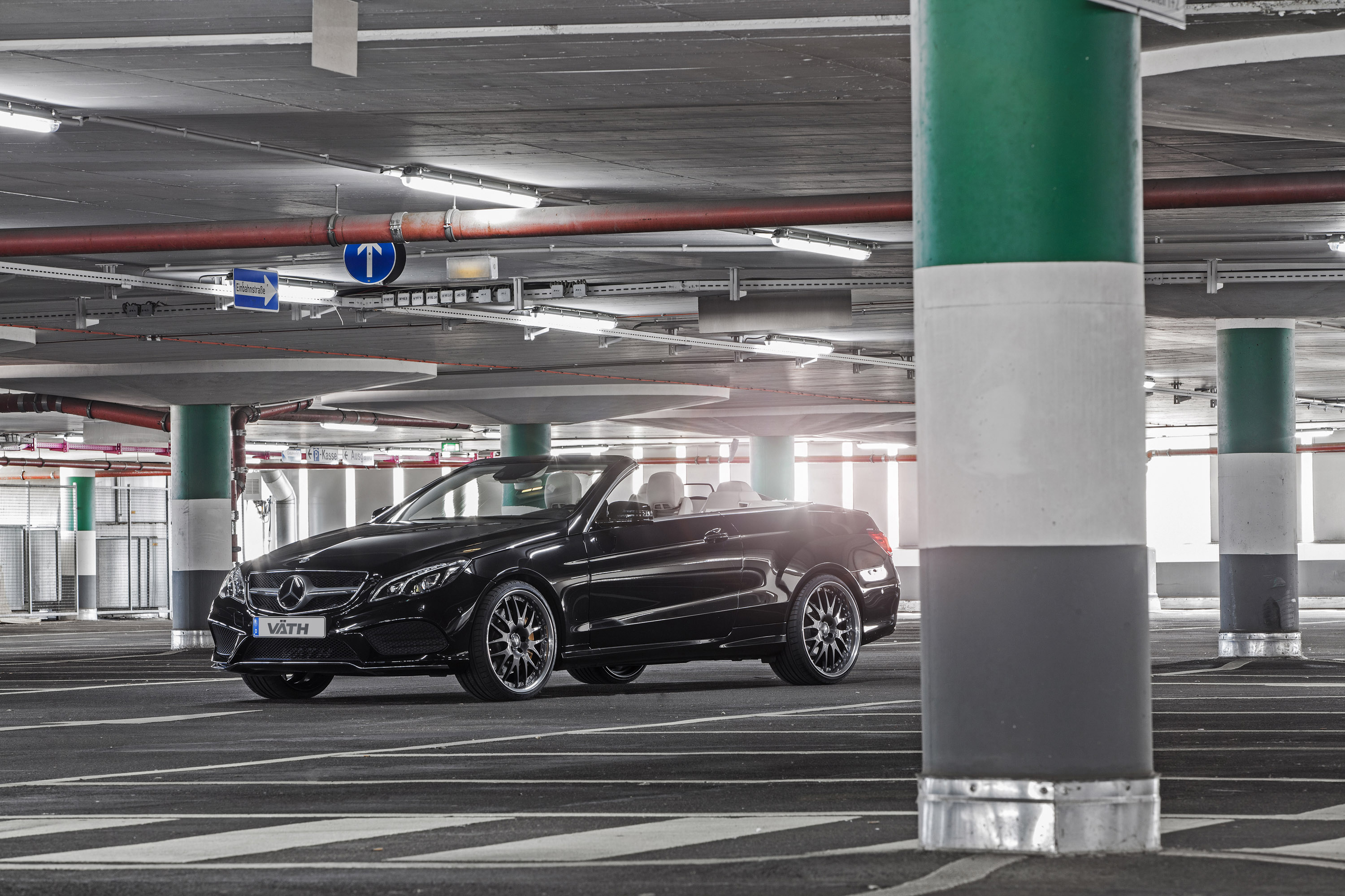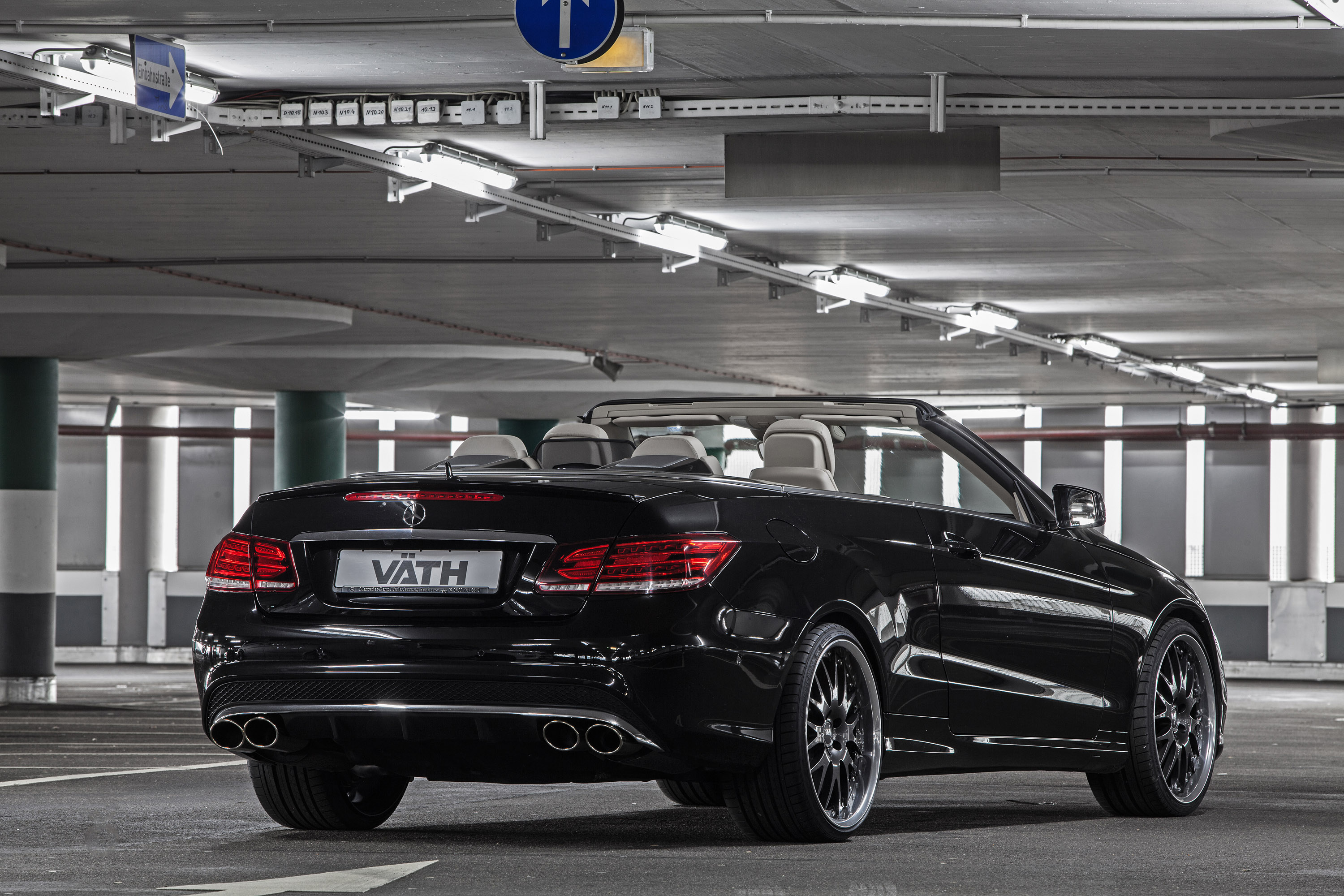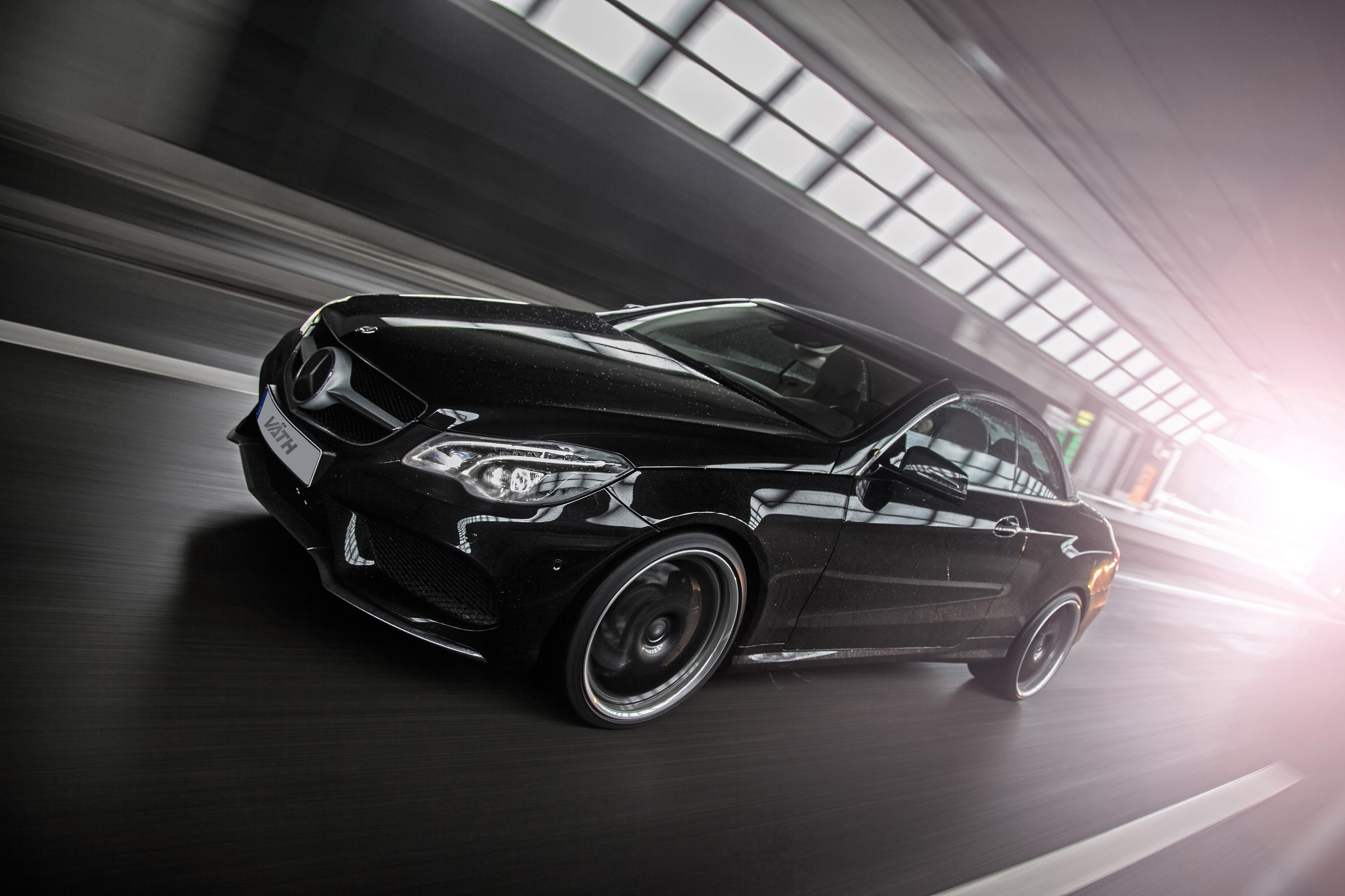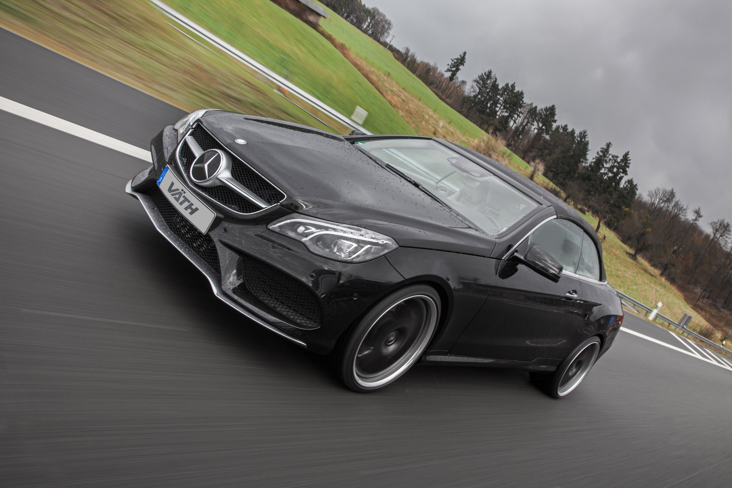 No other than black E 500 Cabrio (W207) had to "serve" this time. V50RS tuning-kit makes available individual fine-tuning of engine electronics with (with appropriate tire approval!) Vmax-increase to 300 km/h, in-house charge-air cooling system and comprising VÄTH-rear silencer system – enables V8-engine, instead of standard values now 550 hp (= 404 kW) as well as 830 Nm max. torque from 2.100 U/min. This should cost about 10,591 euro. In this context, it should also be mentioned that chip tuning is possible from 1,890 euro or – for small motorized models – from only 1.250 euro.
