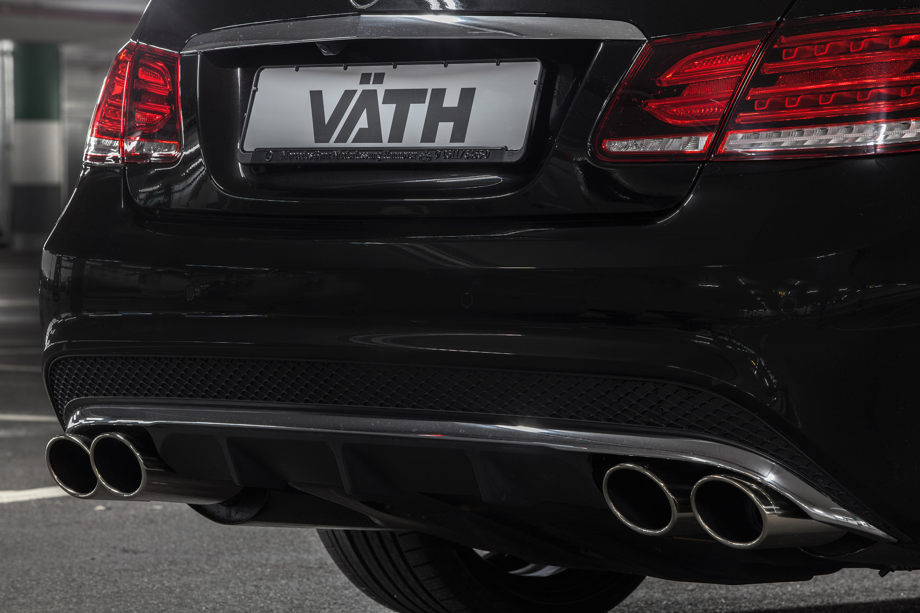 If you want to have a rear silencer system made of VA-stainless steel with flap control system and two oval tailpipes in 115 x 85 mm on both sides as well as flanged edge tailpipes, then we can help you for 4,629.10 euro. VÄTH has also installed a rear diffuser of carbon with fins and larger underbody for 2,011.10 euro. The lowering by 30 mm is carried out by set of springs for the price of 618.80 euro. Super-class braking system should go without saying for this balance of power: VA 6-piston brake callipers with high-efficiency coating, which bite into potted 390-mm-brake discs and brake fluid Castrol SFR flows into the steel braided-brake lines (Warning: this braking system requires minimum 19-inch rims with corresponding H-level at the VA). This maximum braking power is offered at 5,355 euro.