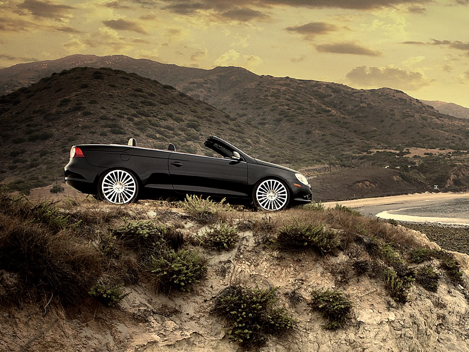 "The Eos Highway 1 was imagined as the perfect vehicle for the car enthusiast's driving lifestyle," said Derek Jenkins, Chief Designer at Volkswagen's Santa Monica, California Design Center. "The ease of transforming the Eos from coupe to convertible not only makes it enjoyable for all kinds of weather, it's like having two cars in one, both a comfortable cruiser and a performance coupe. We wanted to reflect that dual nature in the modifications we made in the creation of the design study. The special leather upholstery and piano black lacquer trim are key components of the luxurious interior, but the 20-inch wheel and tire package, lowered suspension, thick flat-bottom sport steering wheel and rear lip spoiler all communicate a different aspect of the car's character—performance, the kind that lets a driver really enjoy the challenges of roads like Highway 1."