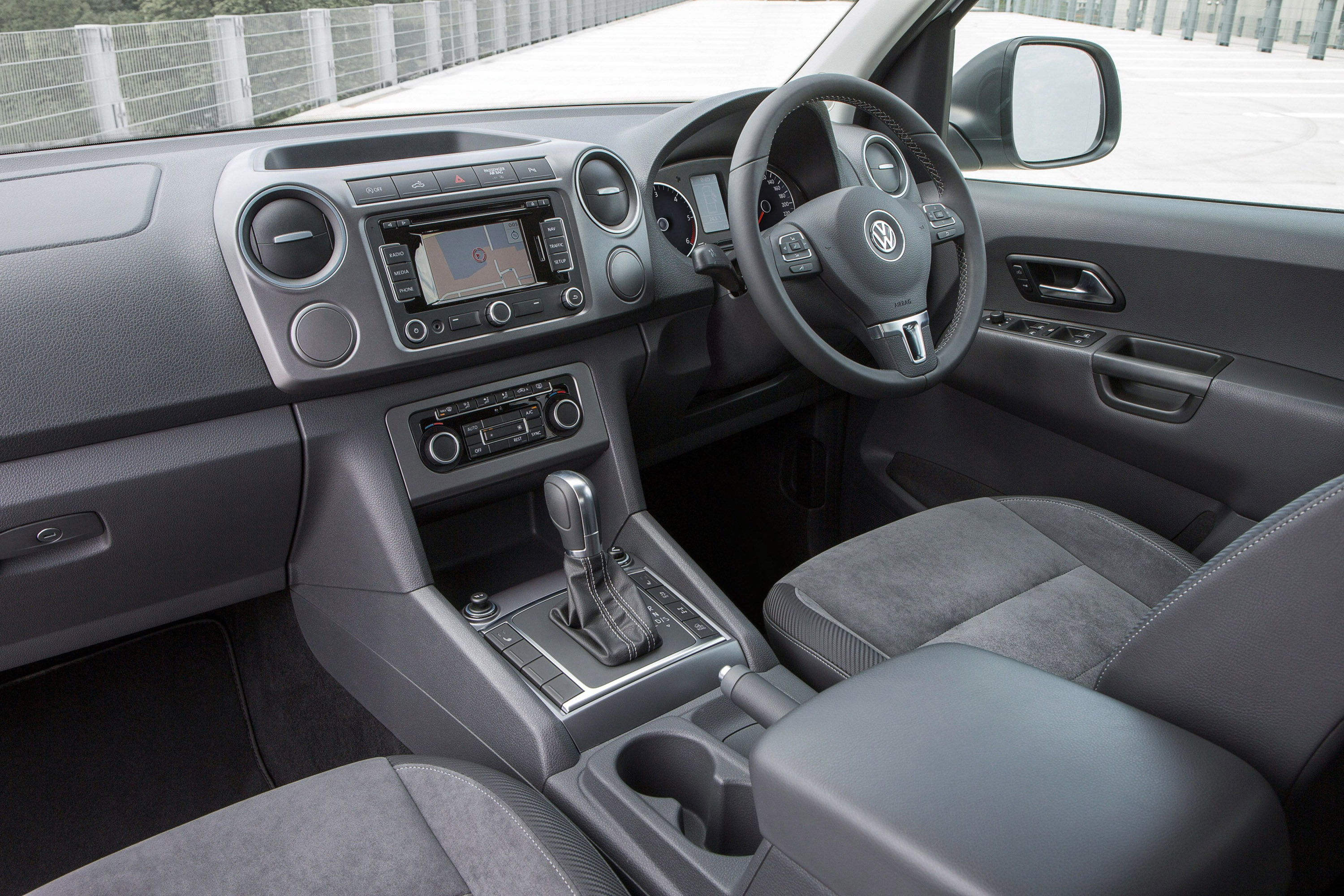 Both models include a host of unique styling features that make the Amarok Dark Label one of the most striking pick-ups on the road. They include 18-inch Durban alloy wheels finished in black, extended wheel arches and a distinctive underride guard below the front bumper. The exterior design package also includes dark tinted rear/side windows, darkened tail lights, matt black side bars and footstep, along with a black rear bumper, black grained door handles and black foil on the B-pillars.