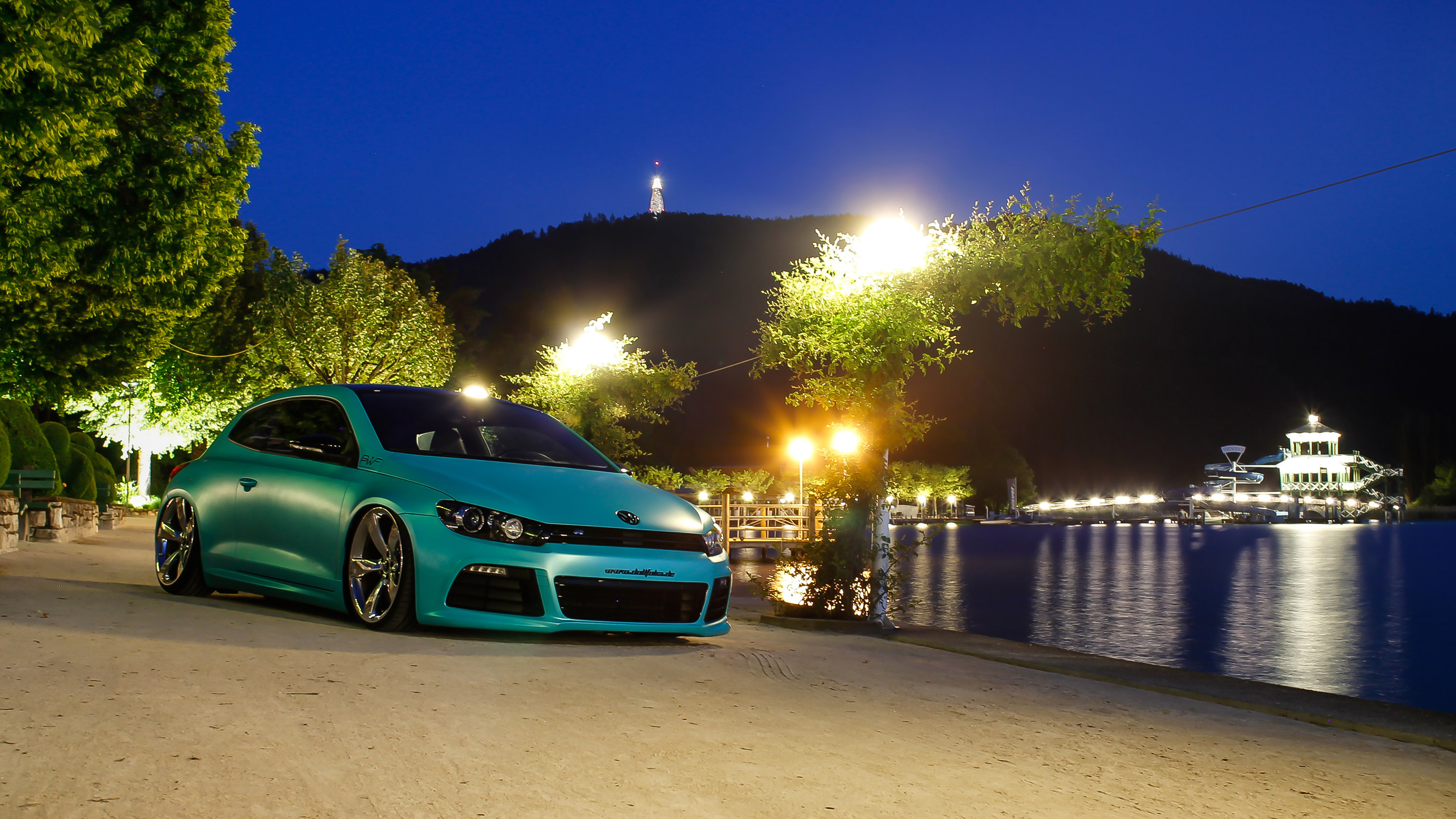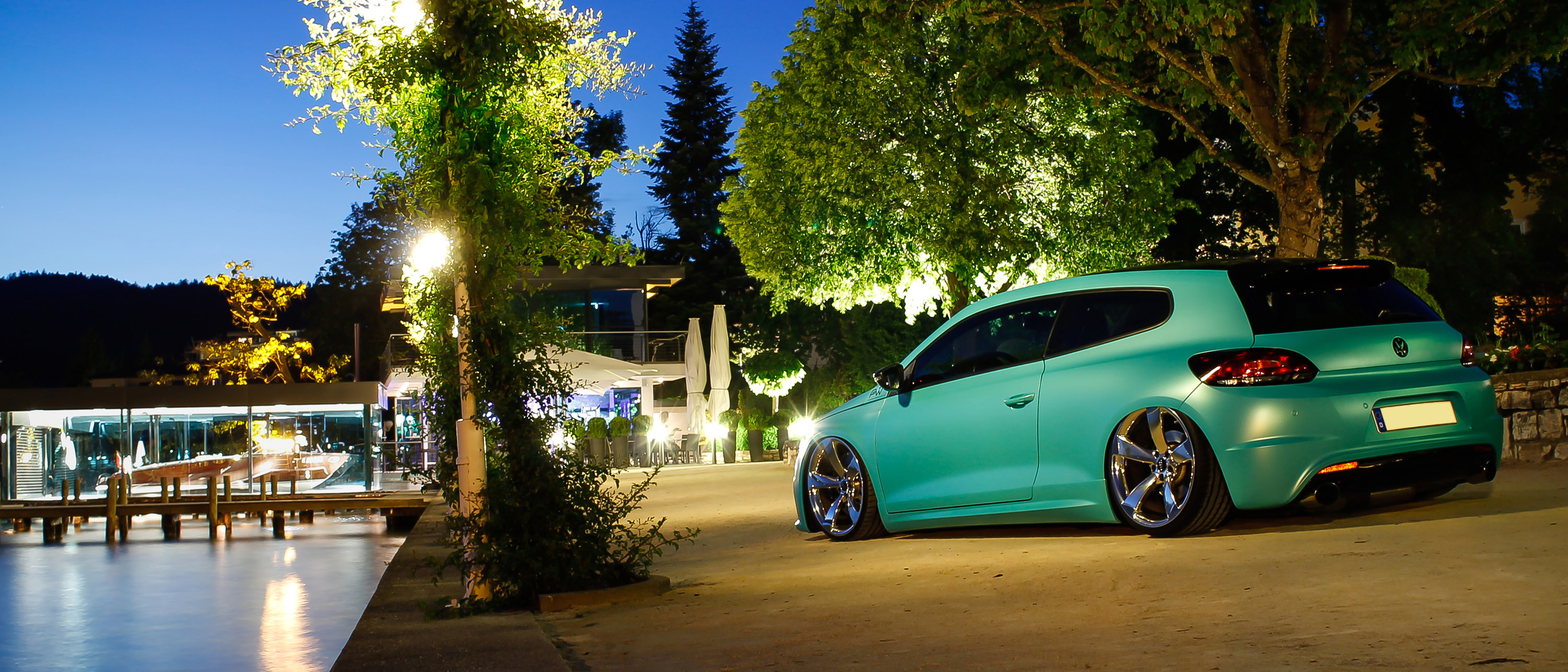 Shortly before the beginning of summer, BRUXSAFOL has introduced the new, extremely trendy color "Matt Caribbean Metallic" as an addition to its unique "PWF" film assortment. This extravagant turquoise matt film with an anodized surface turns any car into a real eye catcher. In cooperation with the "PWF" authorized dealer Werbemanufaktur Doll out of Ulm, a racy VW Scirocco was the first car to be upgraded with this new color. A real "super sports car" with special modifications like a Bull X-exhaust system from Turbo, original high gloss RS5 rotor rims in 9x20 et 26, software optimizing incl. DSG on level 3+ (approx.. 370 PS). The interior of this dream car equipped ex work with motor sports bucket seats was left otherwise mostly in the original version except for the white inside lighting with LEDs.