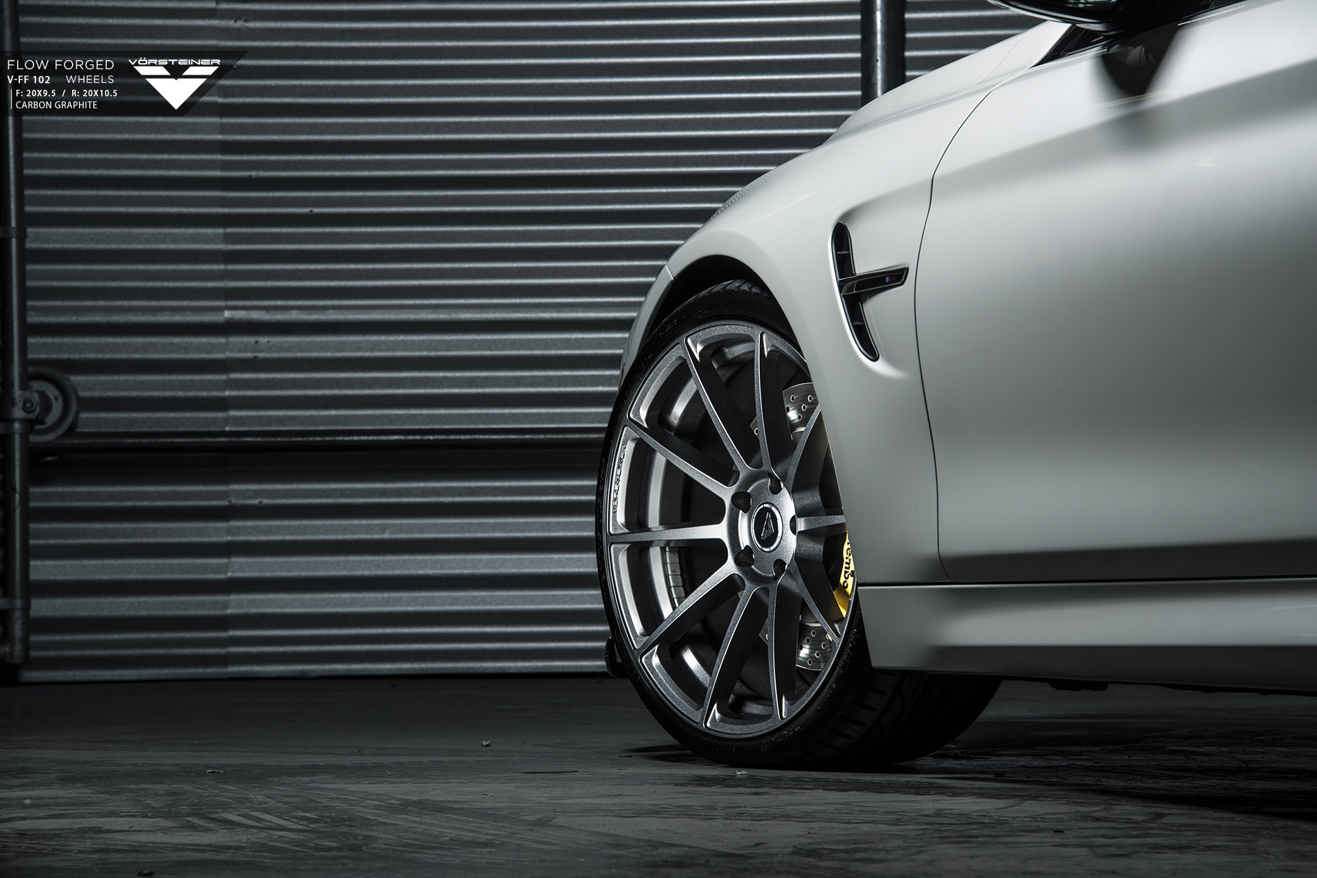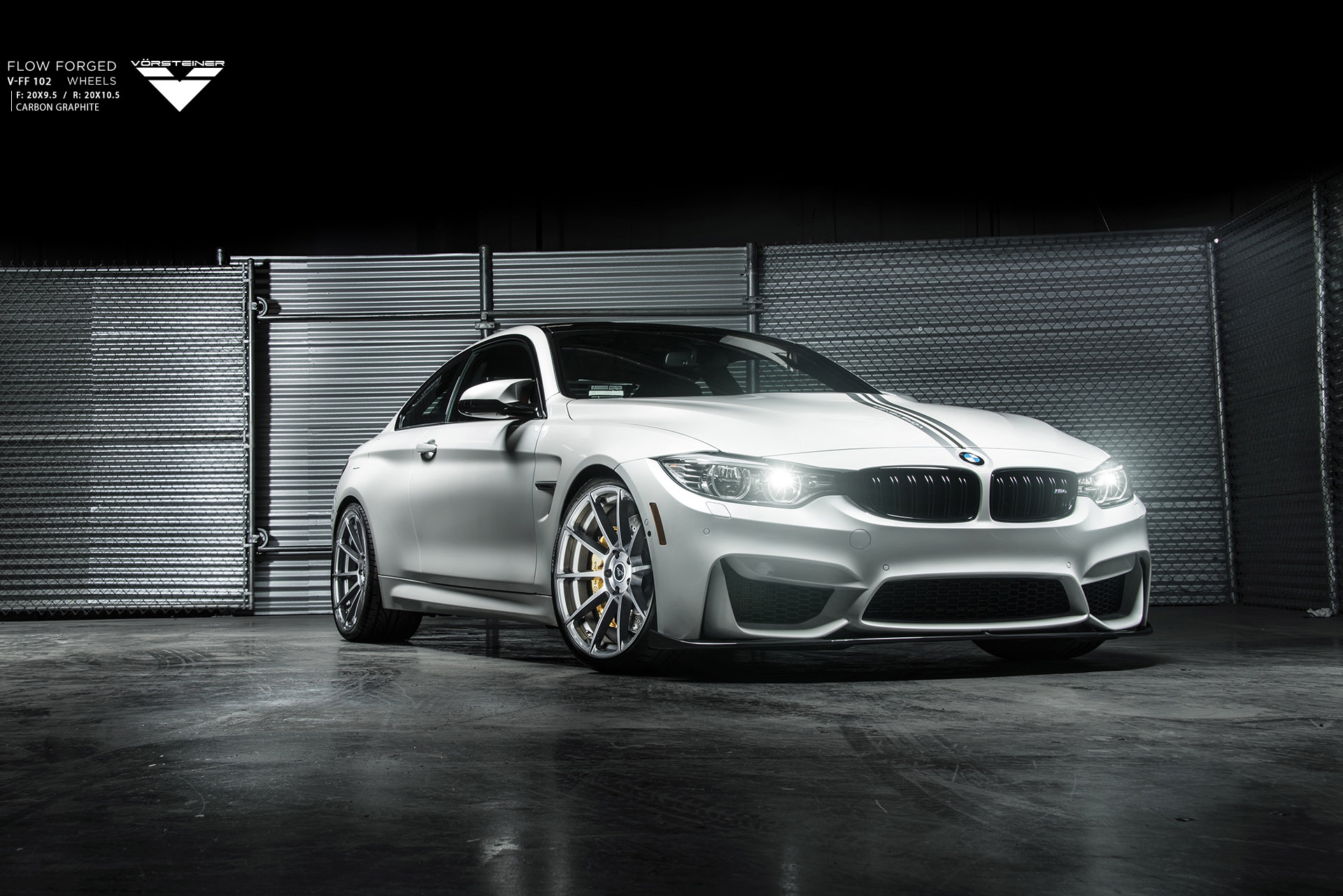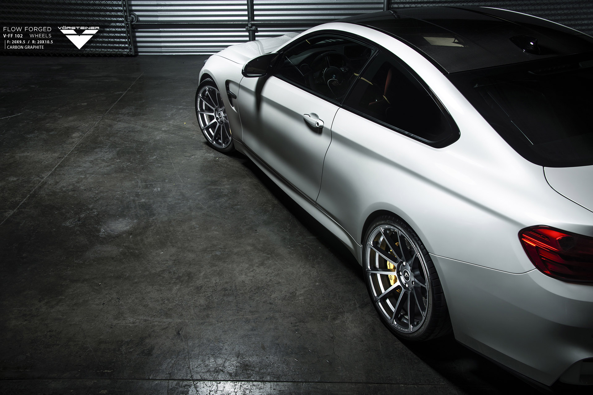 This BMW M4 features our newest Aero Front Spoiler and Evo Deck Lid Spoiler made in our signature PrePreg Carbon Fiber. Also fitted to the vehicle are our 20" Flow Forged V-FF 102 Wheels in Carbon Graphite in addition to the GTS Diffuser & Exhaust Tip Set.